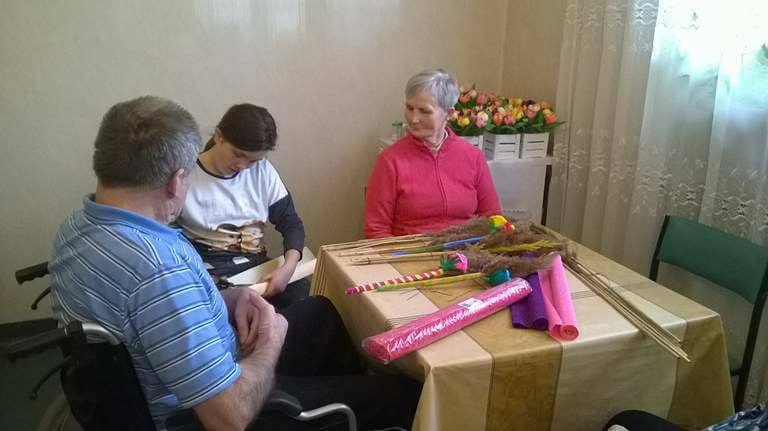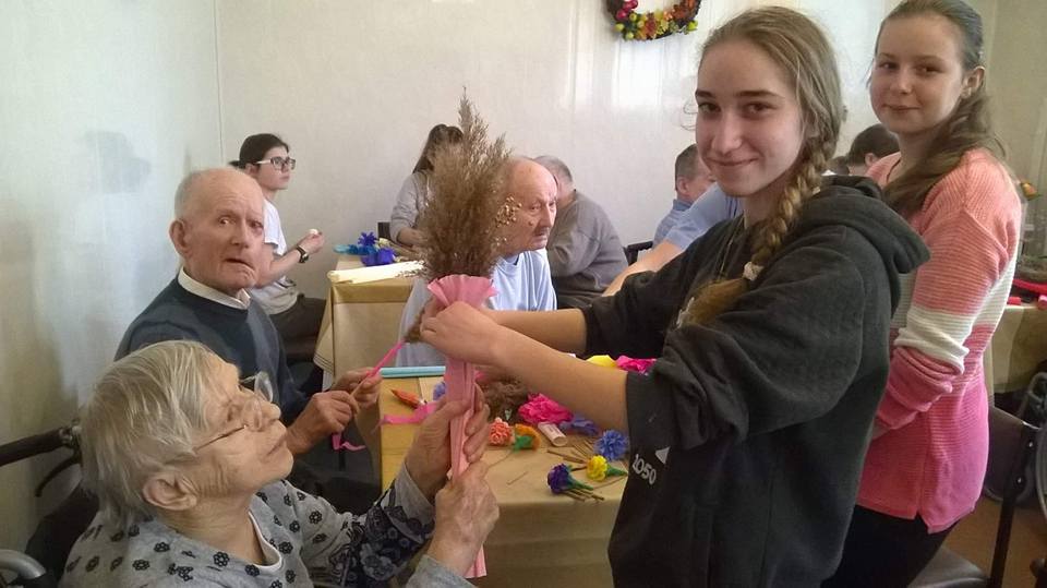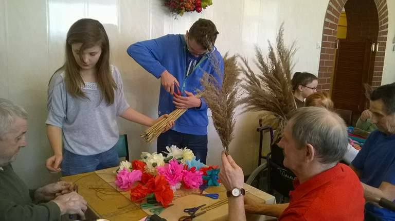 7 kwietnia w piątkowe popołudnie nasi wolontariusze już po raz kolejny odwiedzili zaprzyjaźnionych mieszkańców DPS w Wietrzychowicach. Tym razem mostem między dwoma pokoleniami stały się palmy wielkanocne. Młodzież dzielnie współpracowała z pensjonariuszami DPS-u i dzięki temu powstały przepiękne palmy. Współpraca oczywiście stworzyła również okazję do rozmów o codzienności i tradycjach świątecznych. Dziękujemy za bardzo mile spędzony czas, który z pewnością nie był stracony, wiele nas uczy i już dziś nie możemy się doczekać na kolejną wizytę.