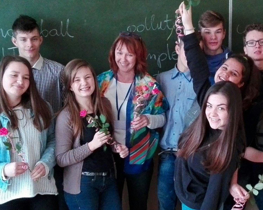 Dziewczyny serdecznie dziękują chłopcom, a wychowawczyni jest dumna ze swoich wychowanków.