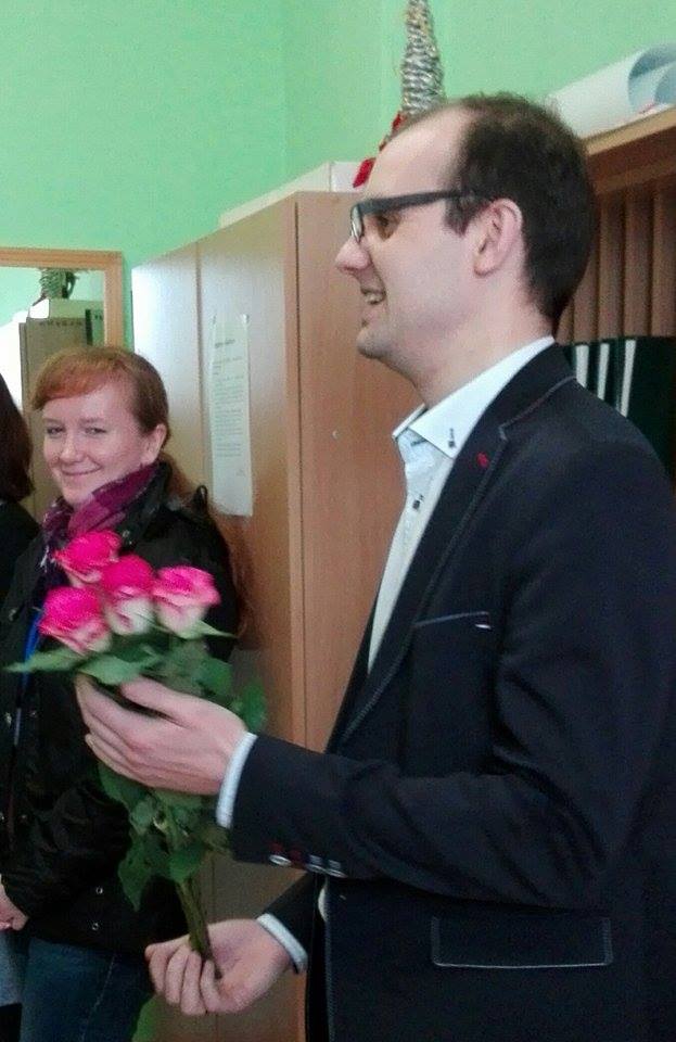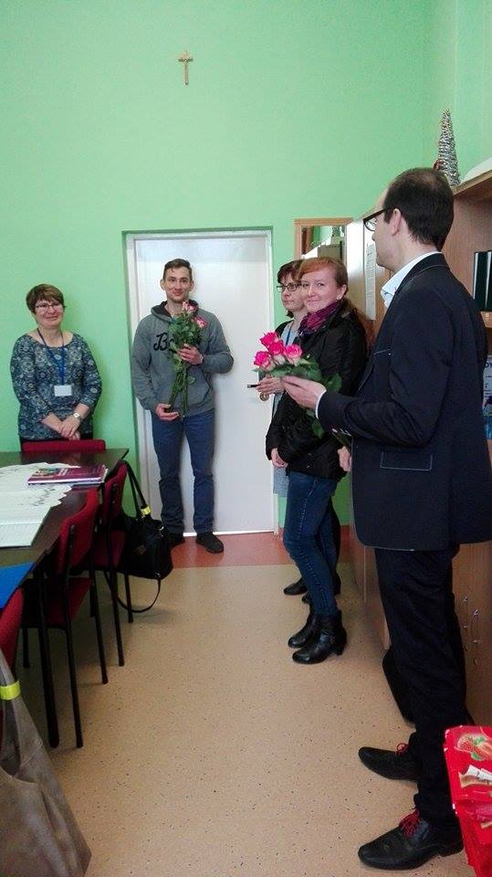 Wicedyrektor Michał Wolak w imieniu wszystkich panów złożył serdeczne życzenia i wręczył przepiękne róże wszystkim paniom zatrudnionym w naszej szkole.