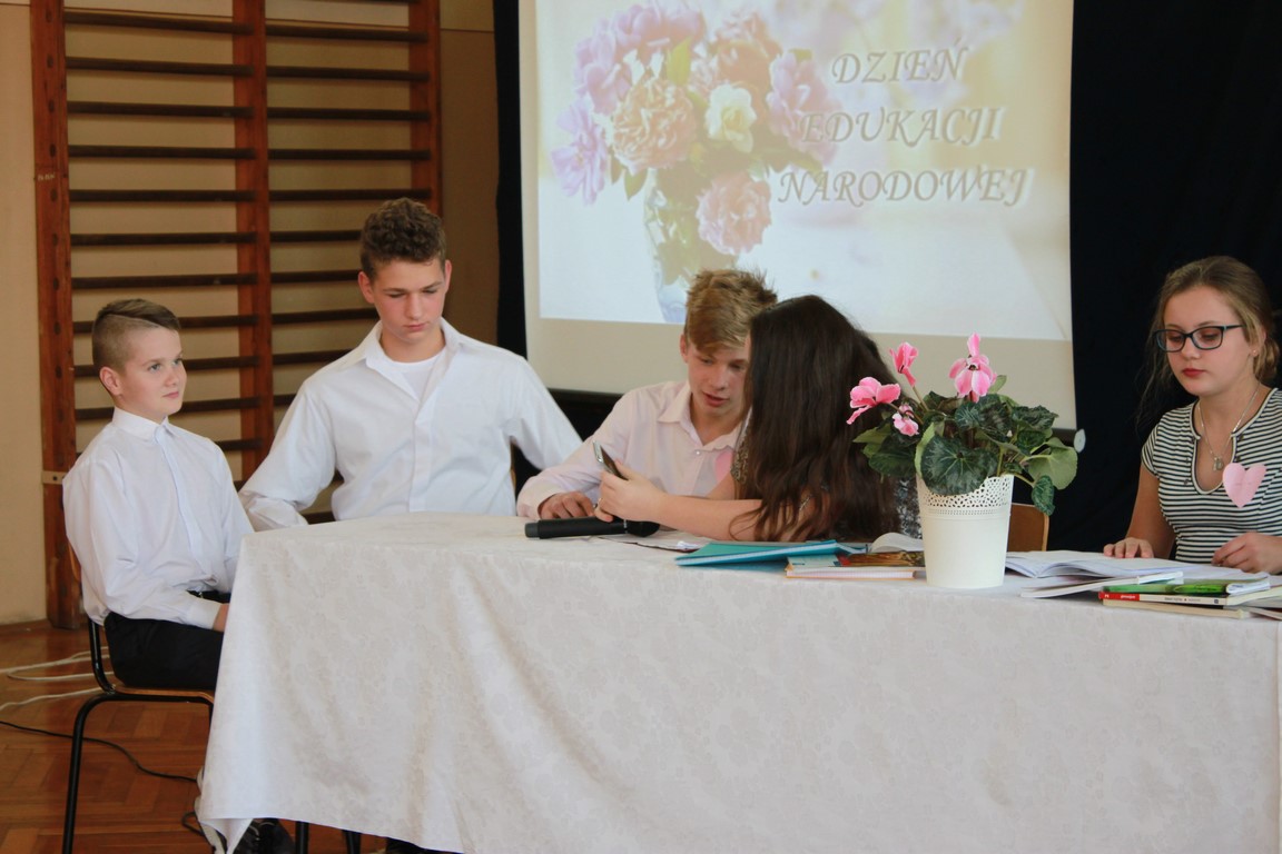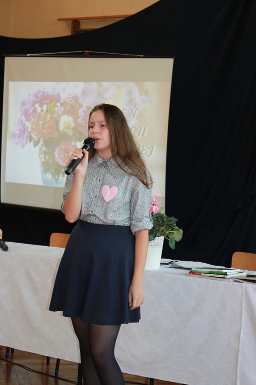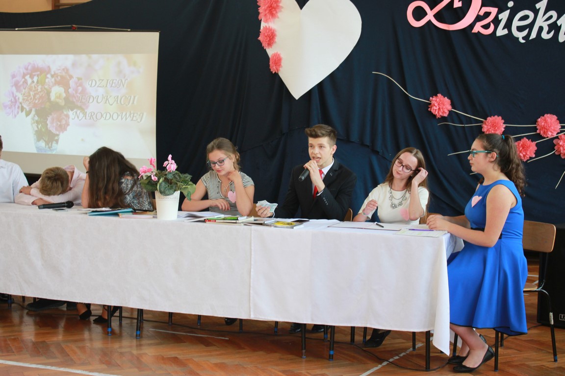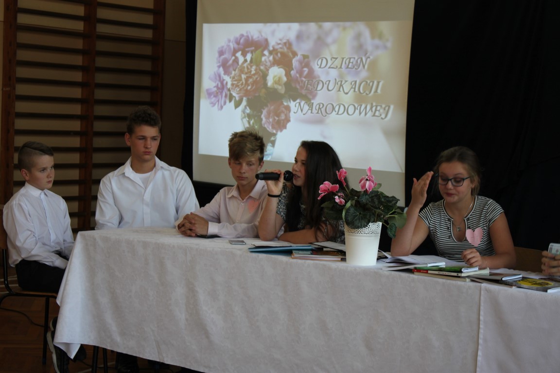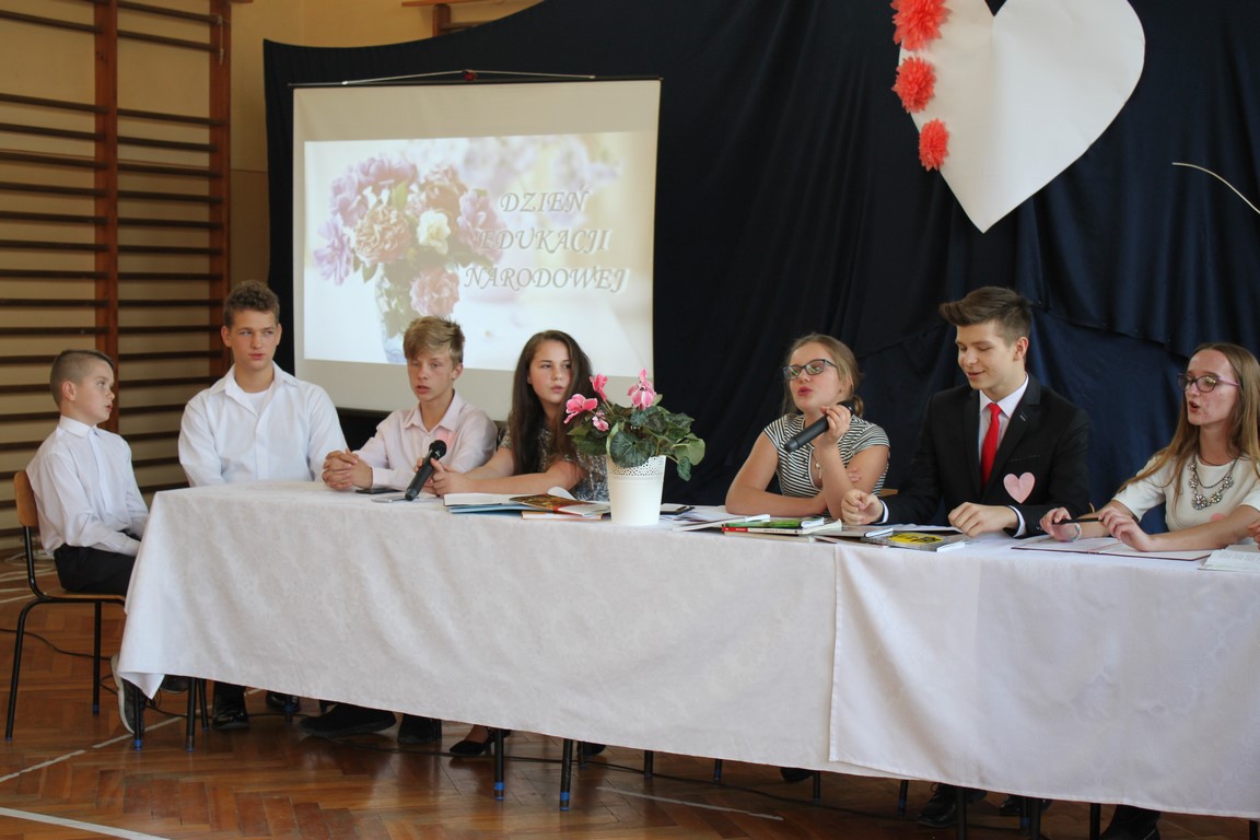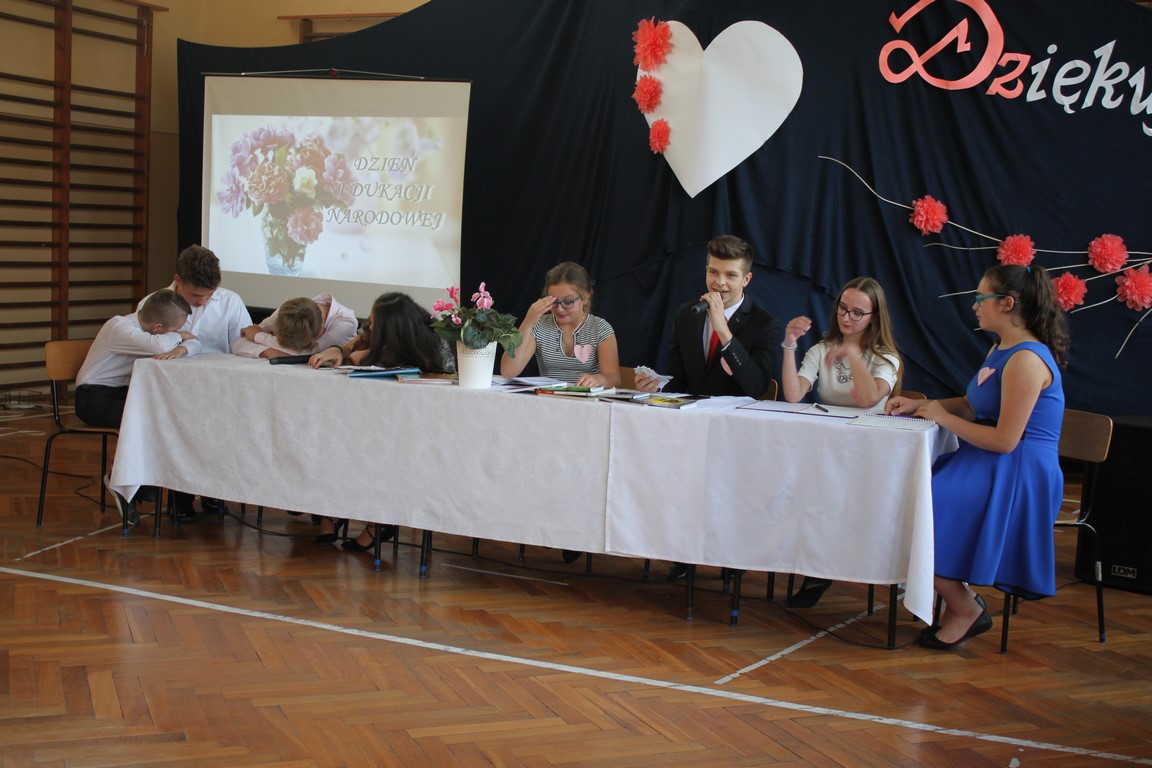 Uczniowie zaproszonym gościom zaprezentowali montaż słowno – muzyczny przygotowany pod kierunkiem pań: Moniki Bochenek – Król i Anny Sochy. Złożyli także wszystkim nauczycielom i pracownikom szkół życzenia samych dobrych, kolorowych dni. Za swój występ zostali nagrodzeni gromkimi brawami.