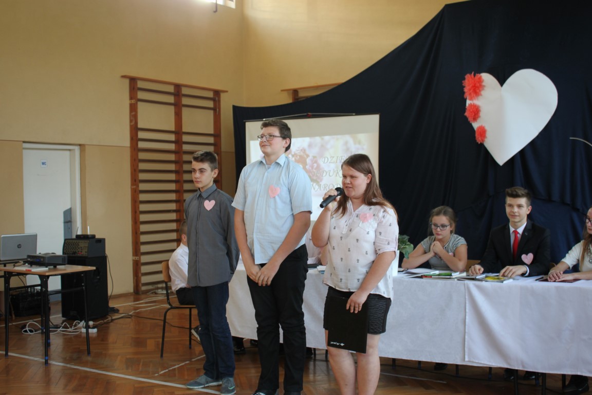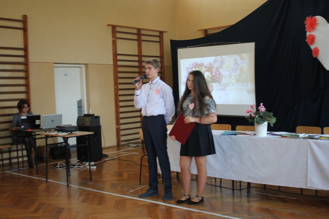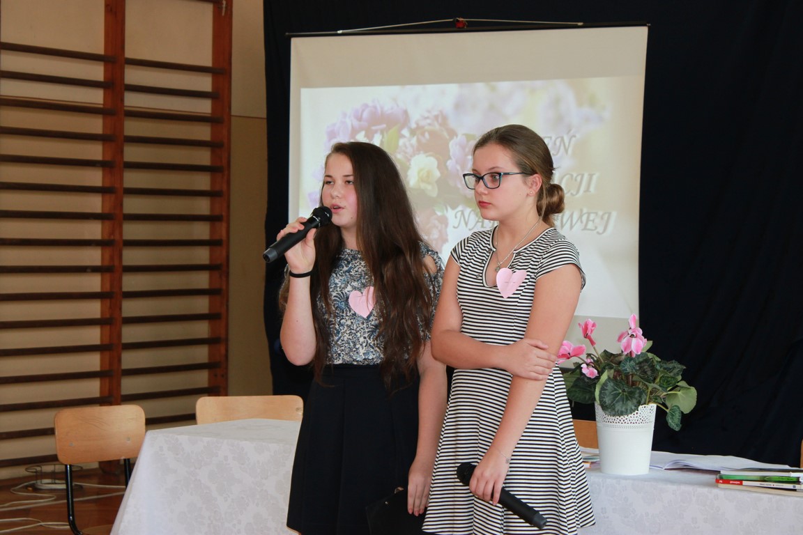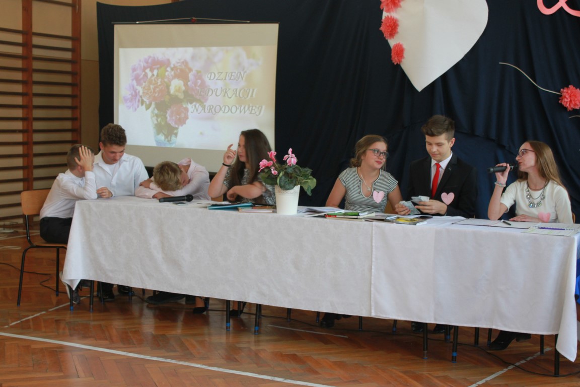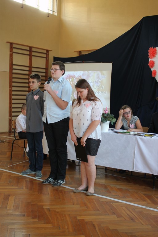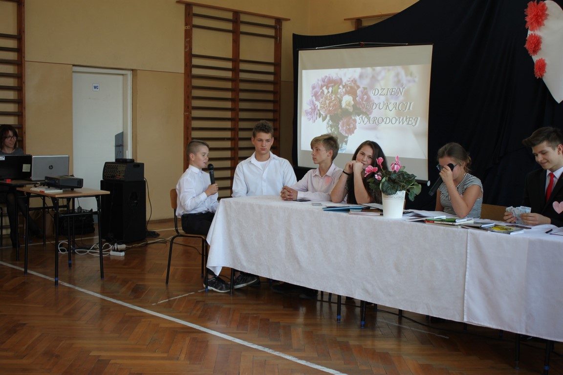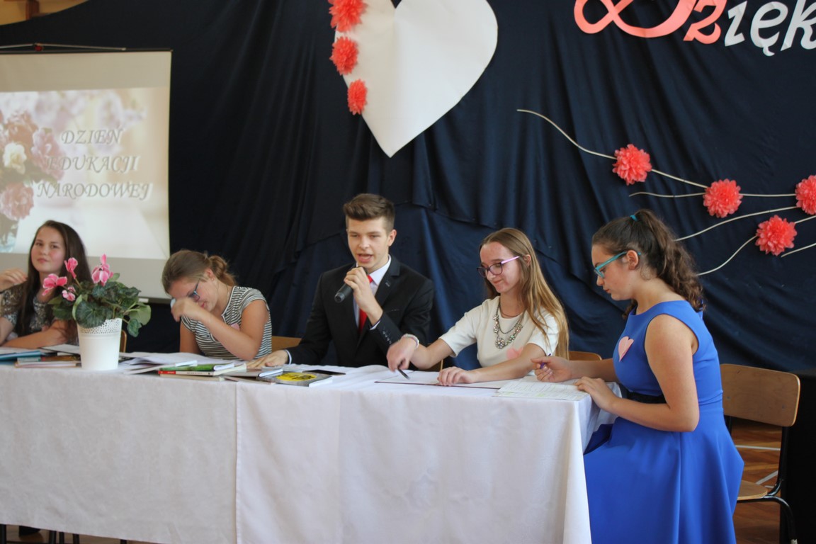 Uczniowie zaproszonym gościom zaprezentowali montaż słowno – muzyczny przygotowany pod kierunkiem pań: Moniki Bochenek – Król i Anny Sochy. Złożyli także wszystkim nauczycielom i pracownikom szkół życzenia samych dobrych, kolorowych dni. Za swój występ zostali nagrodzeni gromkimi brawami.
