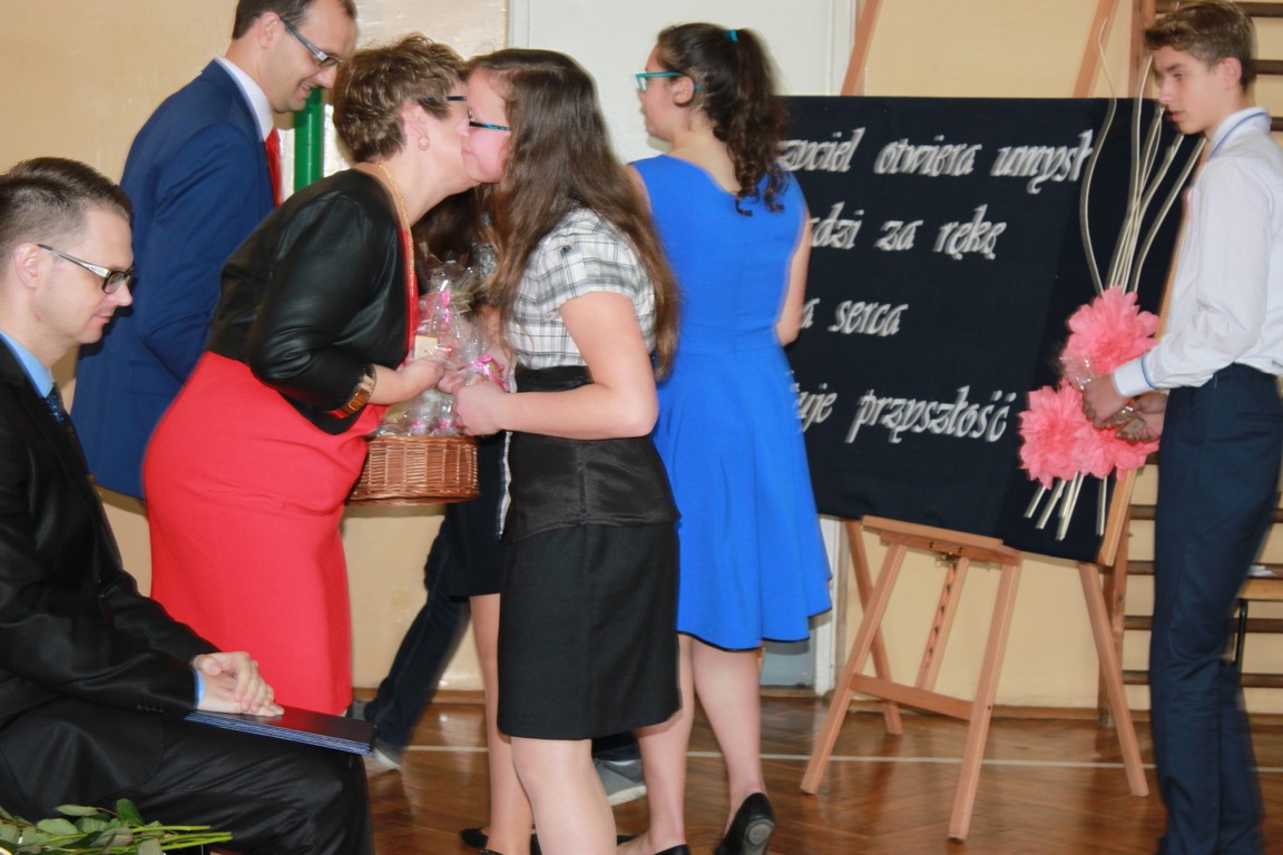 Wójt Gminy Wietrzychowice Tomasz Banek dziękował nauczycielom za trud włożony w wychowanie i nauczanie młodego pokolenia Wietrzychowian, życzył nauczycielom samych sukcesów zawodowych i osobistych. Gratulował wysokich wyników egzaminacyjnych i wspaniałych efektów pracy dydaktycznej, wychowawczej i opiekuńczej.
