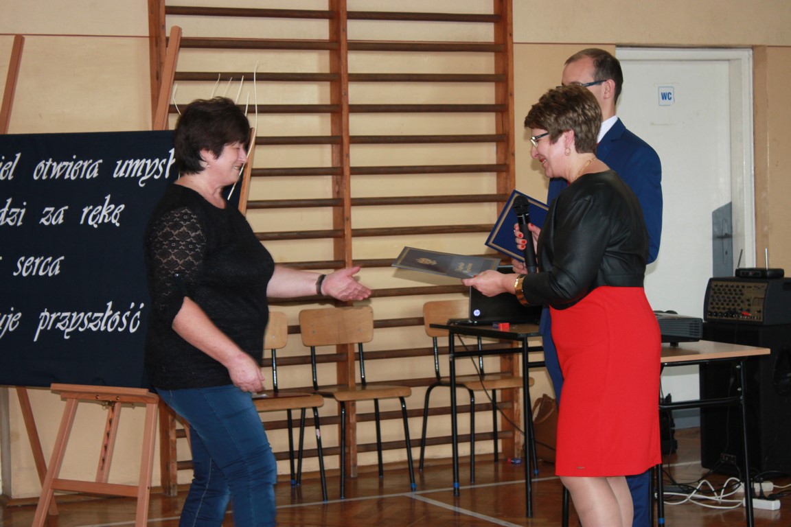 Dyrektor Zespołu Szkolno – Przedszkolnego w Wietrzychowicach Jadwiga Łucarz wraz z wicedyrektorem Michałem Wolakiem wręczyli nauczycielom i pracownikom podziękowania i nagrody.