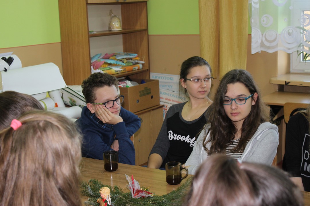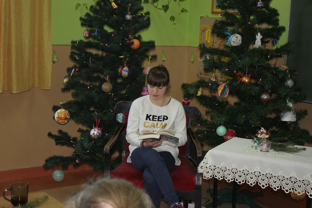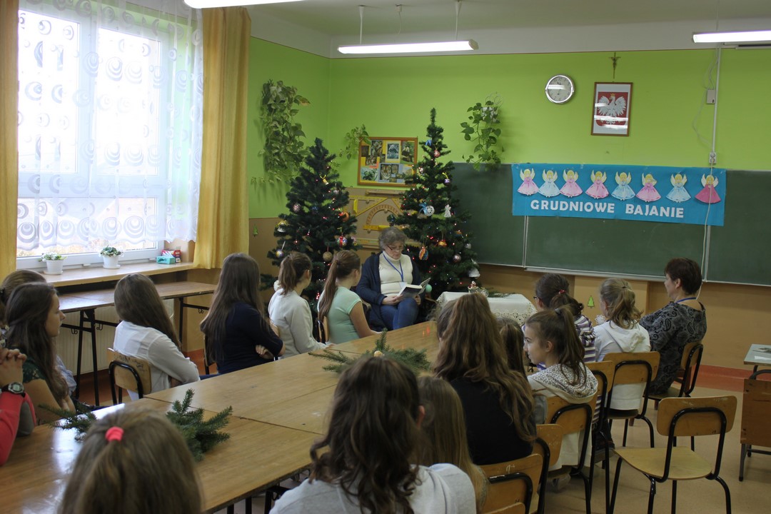 Grudniowe bajanie pani Maria Wojciechowska zorganizowała już po raz drugi. Zarówno uczniowie jak i nauczyciele chętnie wzięli udział w głośnym czytaniu prozy. Słuchacze z zainteresowaniem wysłuchali artystycznego czytania prozy. Zwieńczeniem grudniowego bajania był poczęstunek: herbata cynamonowa i pierniczki 🙂