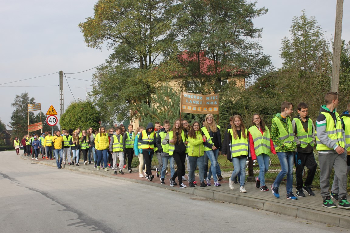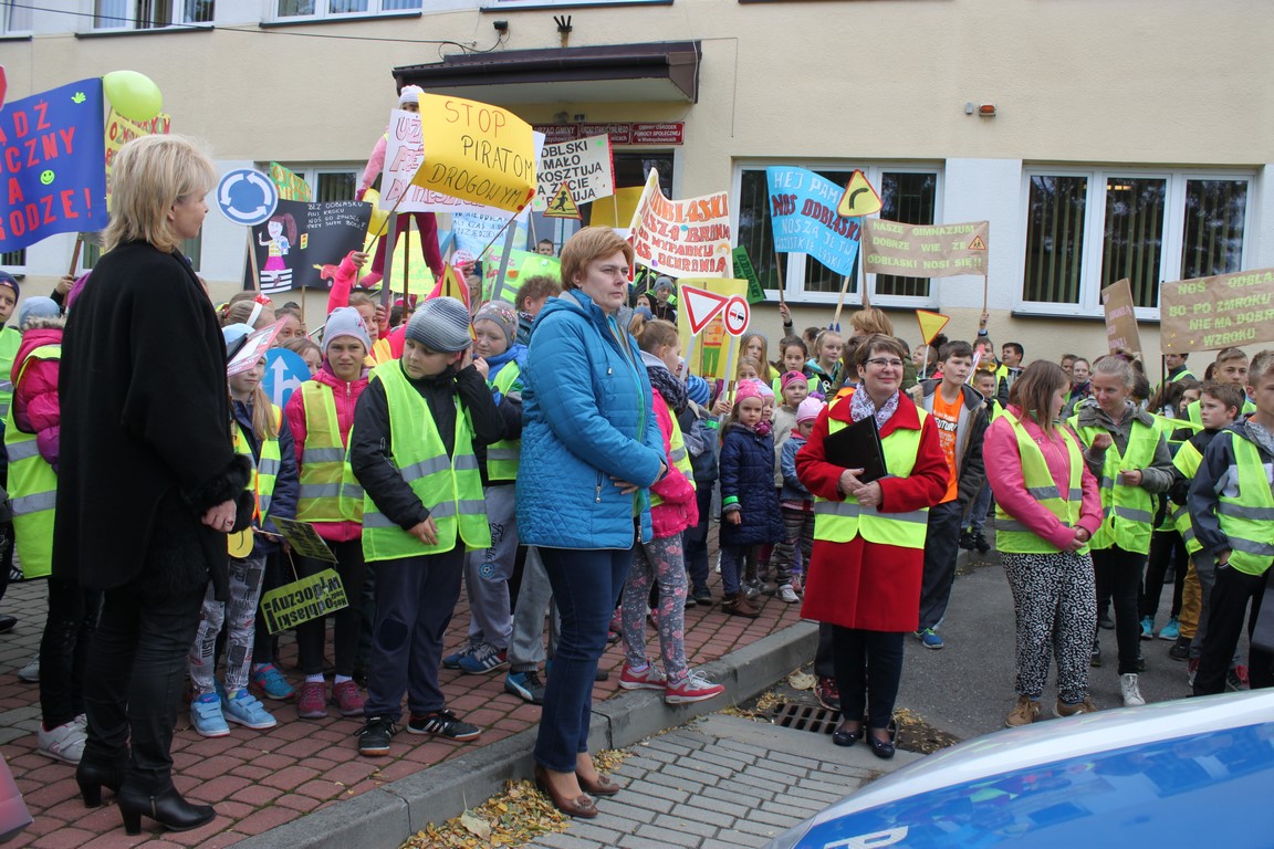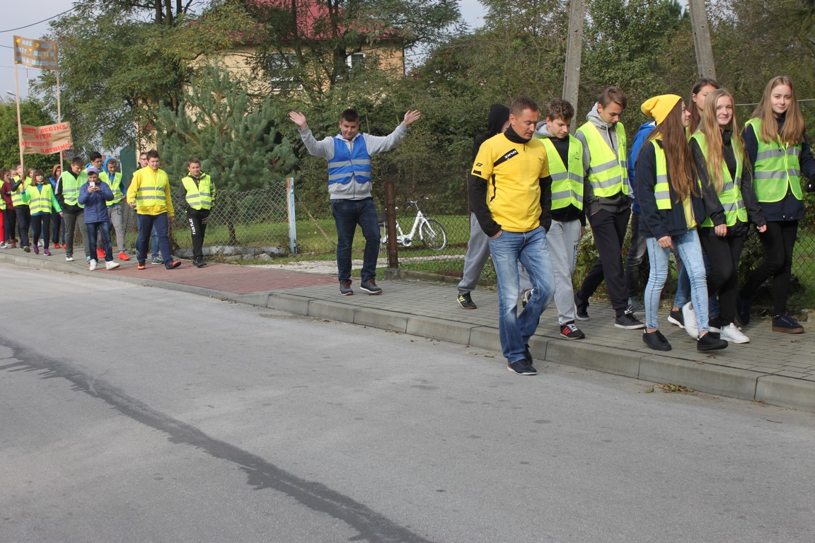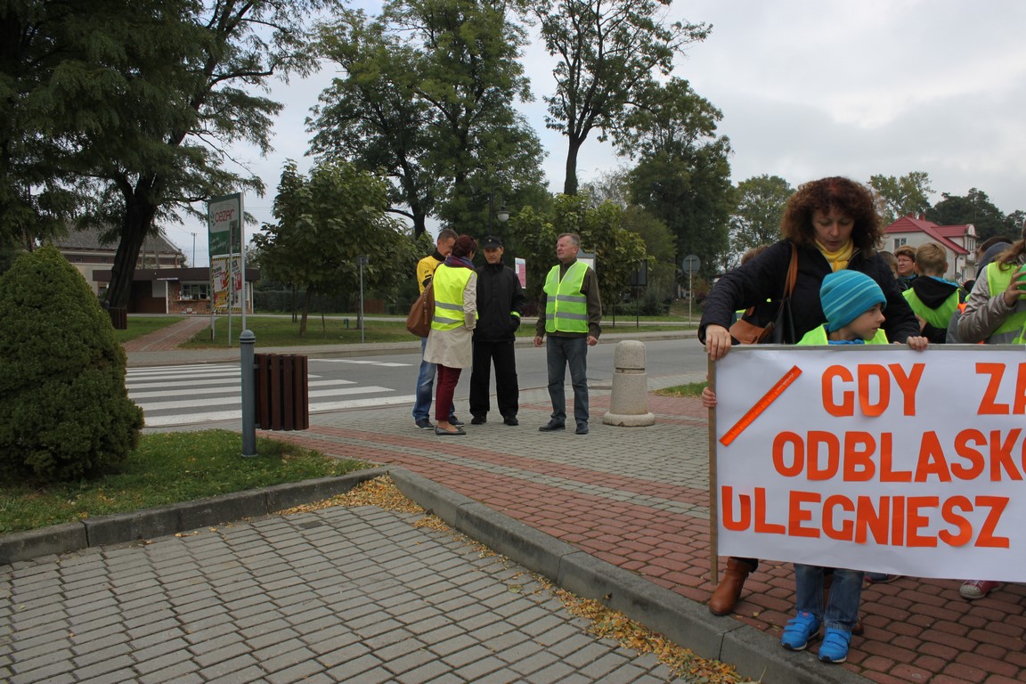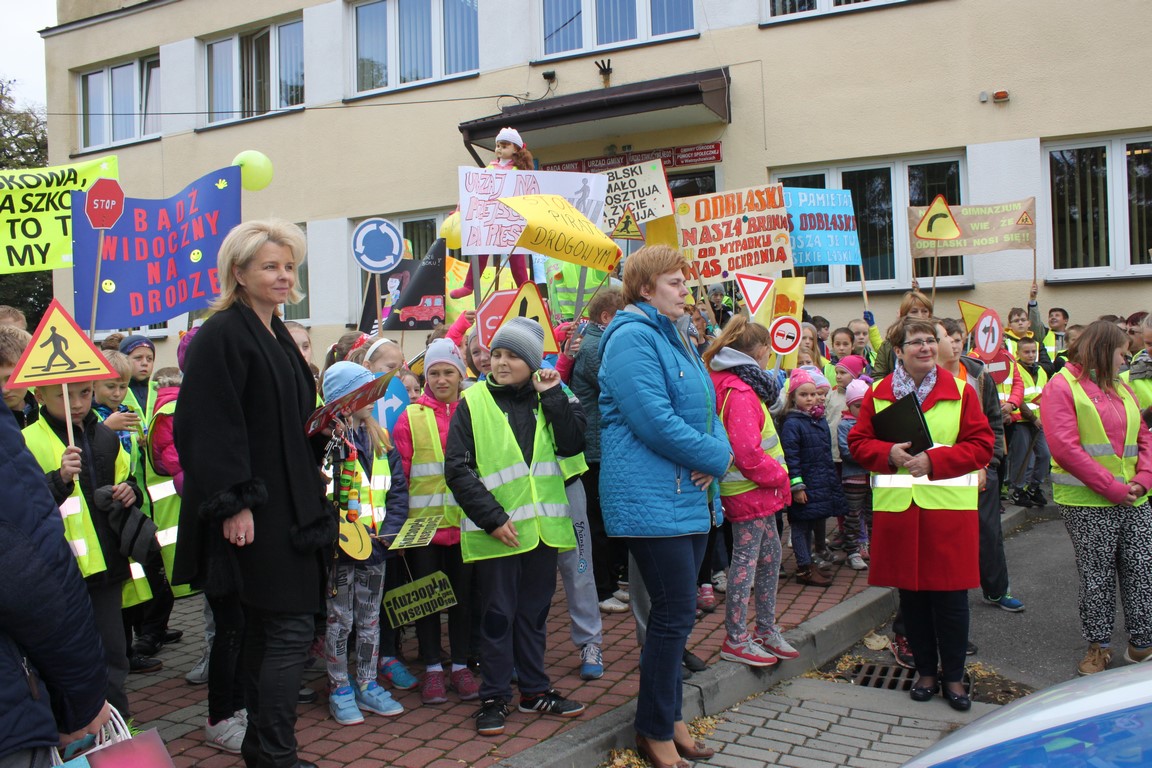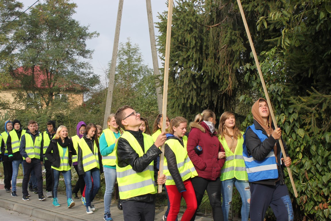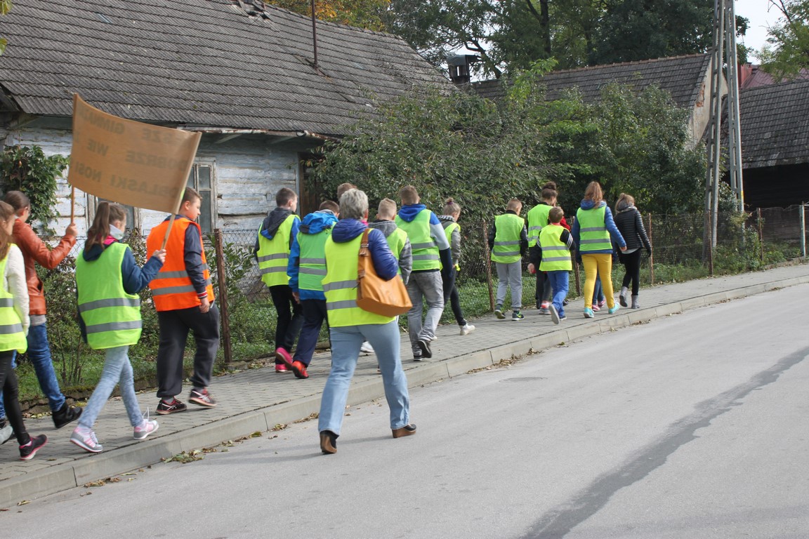 W naszej szkole bardzo troszczymy się o bezpieczeństwo uczniów, nie tylko w szkole, ale również na drodze. Chcąc przybliżyć mieszkańcom naszej gminy ideę noszenia odblasków wspólnie ze Szkołą Podstawową w Wietrzychowicach organizujemy Happening. Wszyscy ubrani w odblaskowe kamizelki pod ochroną policji przechodzimy pod budynek Urzędu Gminy Wietrzychowice skandując hasła zachęcające do noszenia odblasków. Spotykamy się tam z przedstawicielami władz gminnych oraz policji. Po krótkiej pogadance i rozstrzygnięciu konkursu na najlepsze hasło zachęcające do noszenia odblasków wracamy do szkoły.
