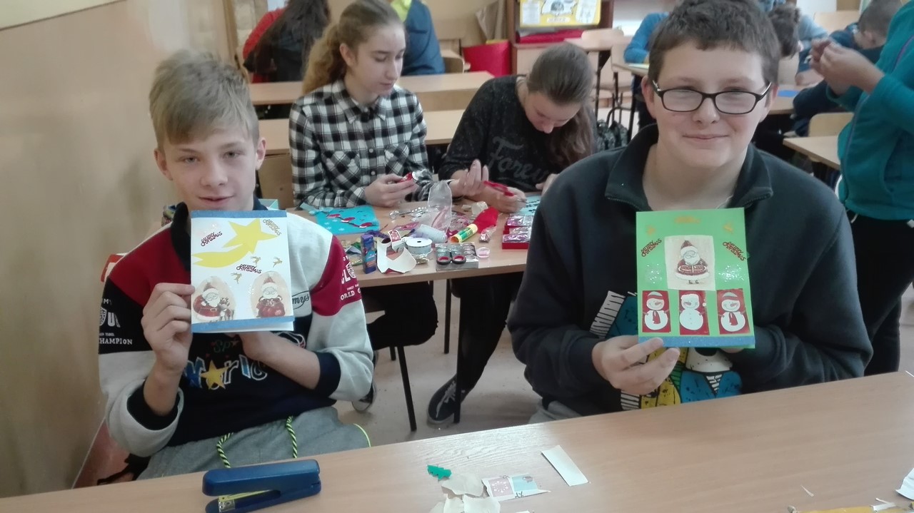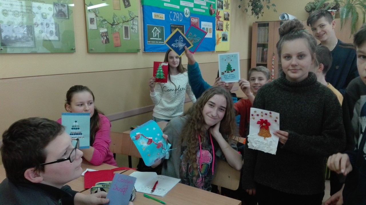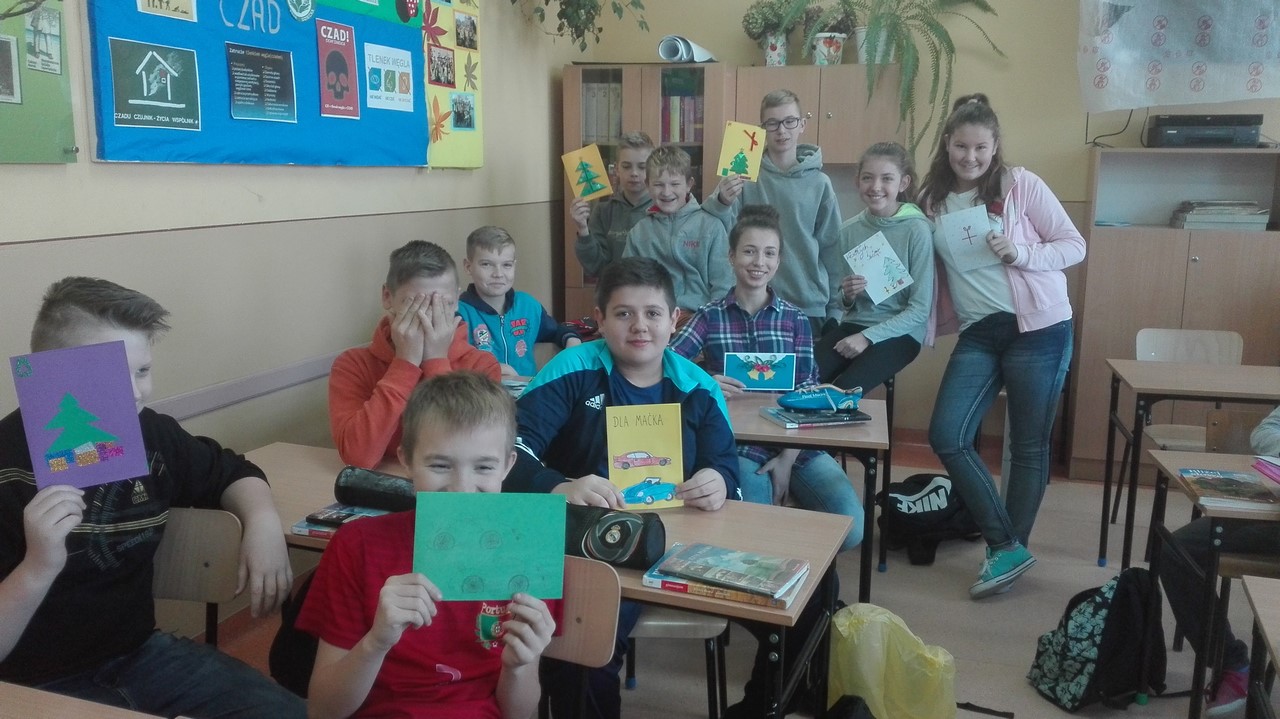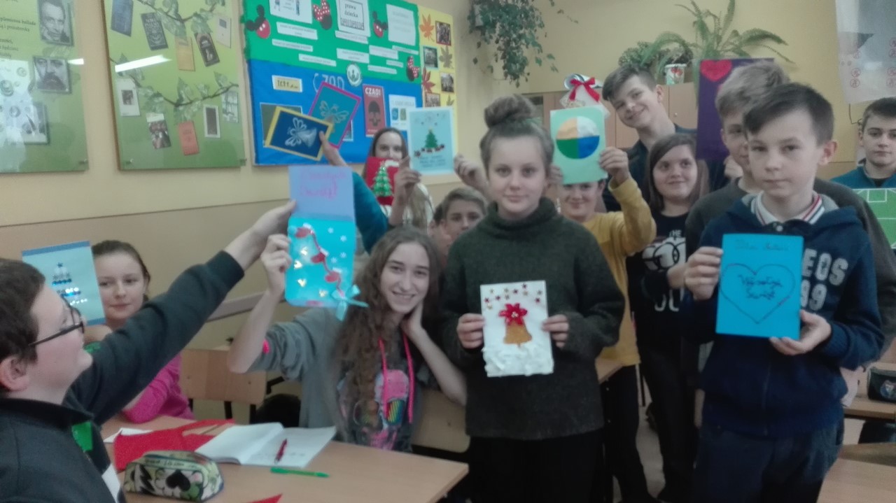 Przedświąteczne zajęcia artystyczne różniły się od innych – uczniowie klasy Ia i Ib zamiast wykonywać kartki na ocenę, postanowili podarować swój talent Natalce i Maćkowi. Nauczyciel plastyki zaproponował uczniom, aby napisali oni do swoich, niestety chorych, rówieśników listy w postaci kolorowych kartek świątecznych. Projekt bardzo spodobał się uczniom, którzy stworzyli naprawdę ładne kartki a w nich wzruszające słowa, dodające otuchy i nadziei.  Natalka i Maciek to rówieśnicy naszych pierwszoklasistów, ich profile znajdują się na stronie Marzycielskiej Poczty. Idea tej niecodziennej poczty narodziła się w roku 2009 – są na niej zamieszczone profile chorych dzieci z całej Polski, które kochają dostawać tradycyjne pocztówki i listy, a te dodają dzieciom siły do walki z chorobą, a ich rodzicom otuchy.
