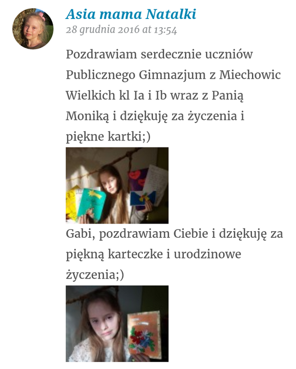 Mamy nadzieję, że nasze listy spodobały się Natalce i Maćkowi, a także obiecujemy, że  z naszej strony nie była to jednorazowa akcja. Już niedługo zamierzamy zrobić niespodziankę innym dzieciom, poświęcić czas na napisanie listu do kogoś, kto na niego czeka.