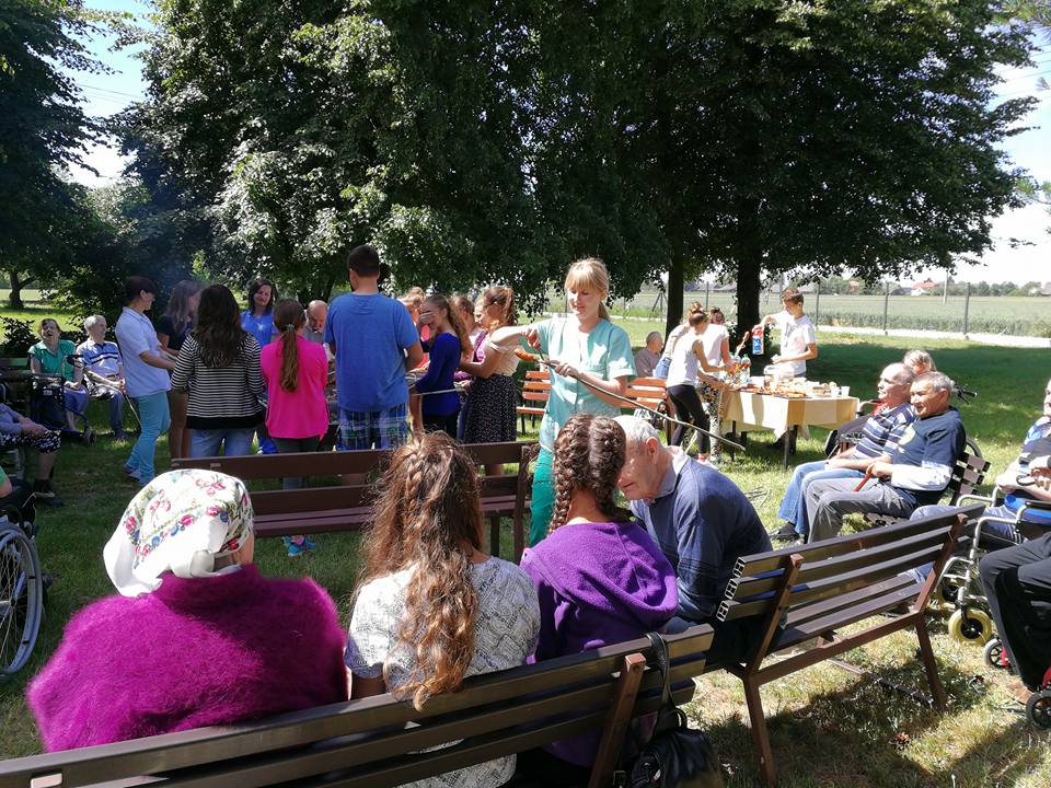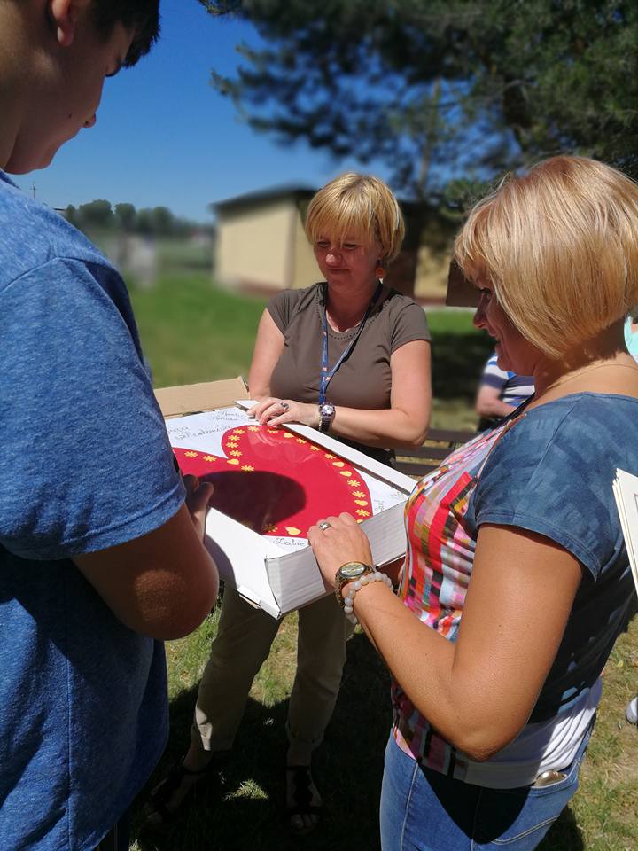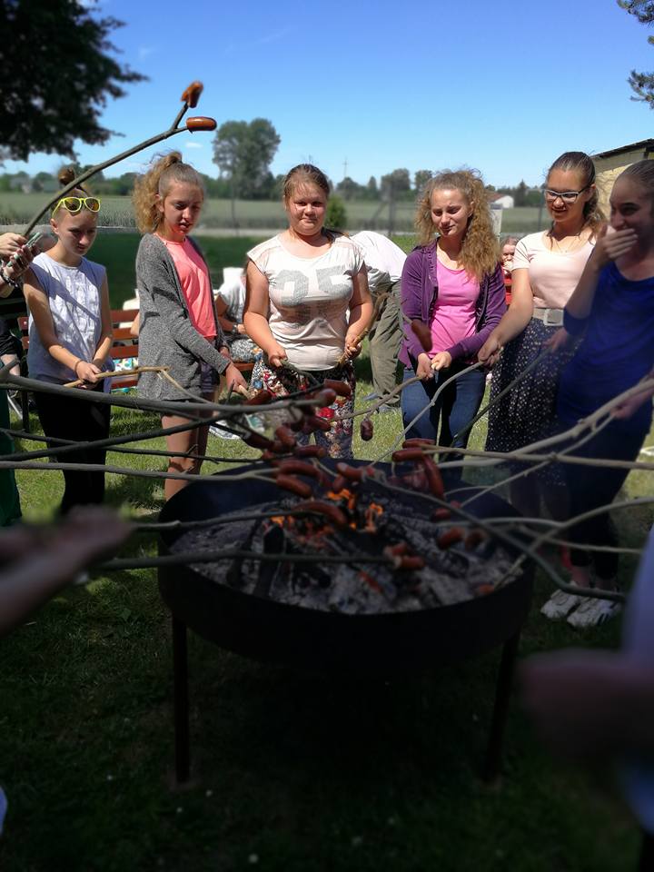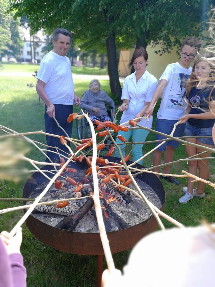 1 czerwca uczniowie z grupy wolontariatu po raz kolejny odwiedzili mieszkańców Domu Pomocy Społecznej w Wietrzychowicach i wspólnie przywitali wakacje przy tradycyjnym ognisku i pysznych kiełbaskach. Pani dyrektor Anna Górska w szczególny sposób podziękowała tym najwierniejszym wolontariuszom, obdarowując ich aniołkami na szczęście. Bardzo jesteśmy wdzięczni mieszkańcom, pani Dyrektor oraz pracownikom za życzliwość okazywaną naszym uczniom podczas odwiedzin w DPSie oraz mamy nadzieję, że po wakacjach znów będziemy się spotykać i uczyć się od siebie szacunku, tolerancji i miłości do drugiego człowieka. Żal nam tylko, że od nowego roku szkolnego nie będzie już w naszej grupie trzecioklasistów: Estery, Natana i Tomka.