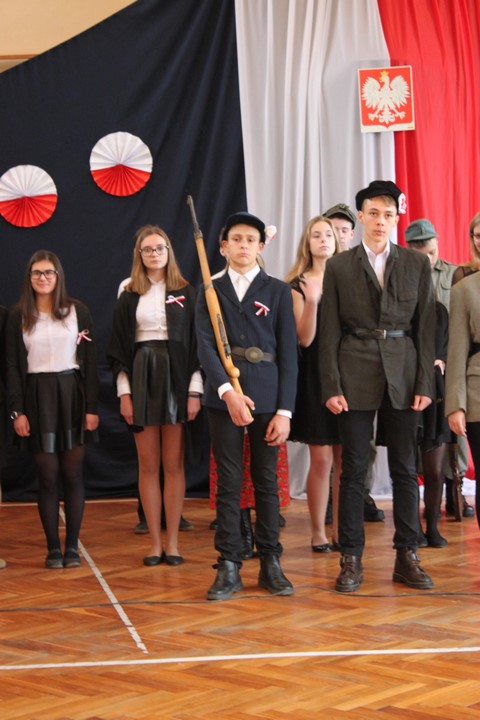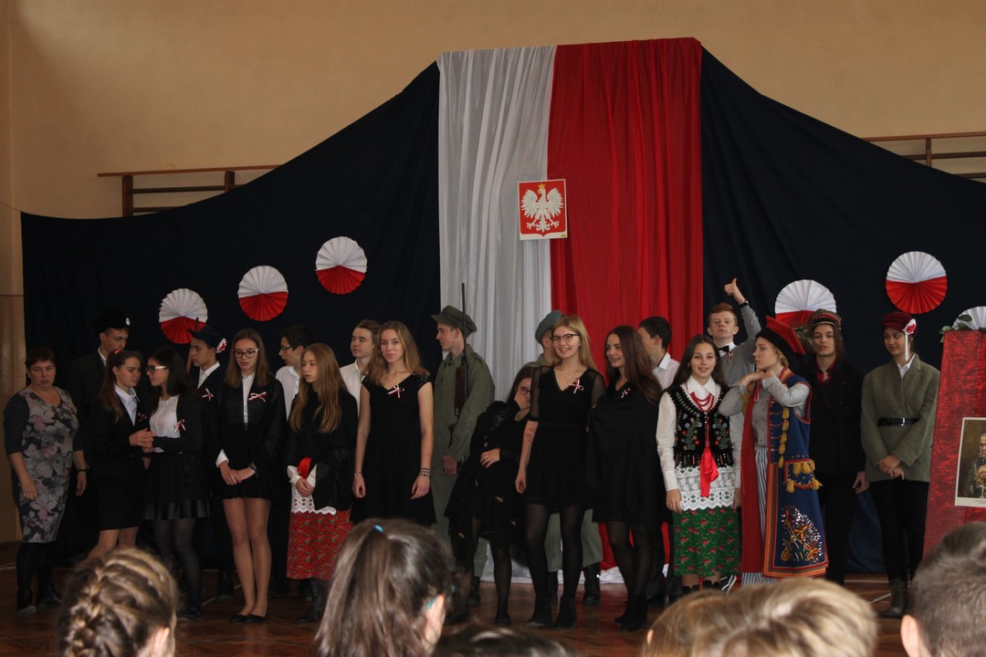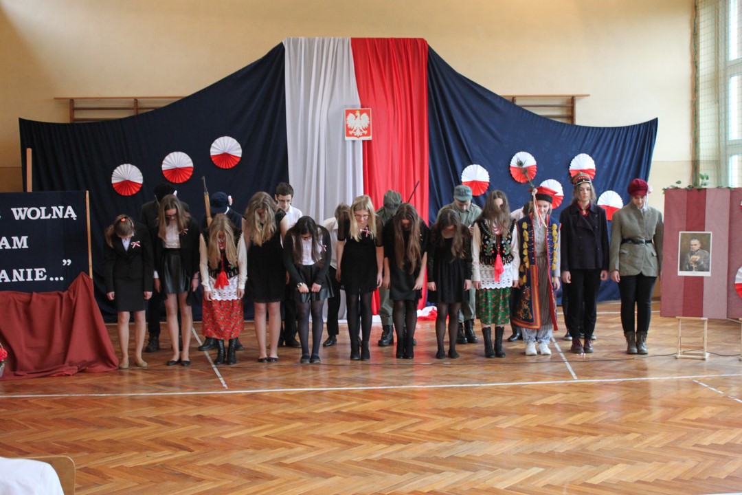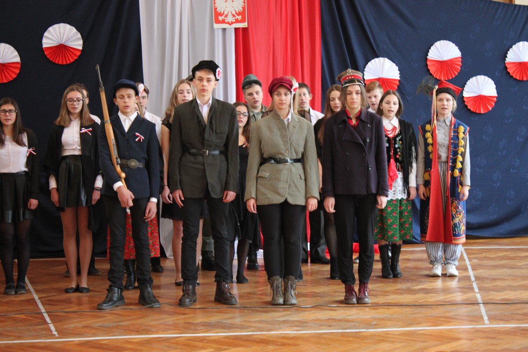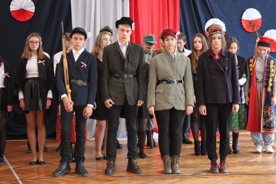 Doskonała recytacja, ciekawa muzyczna aranżacja pieśni patriotycznych i legionowych w wykonaniu chłopców, współczesne piosenki o Ojczyźnie oraz stroje stylizowane na czas powstań narodowowyzwoleńczych złożyły się na podniosłą atmosferę akademii, którą przygotowała nauczycielka historii – Iwona Wojciechowska.