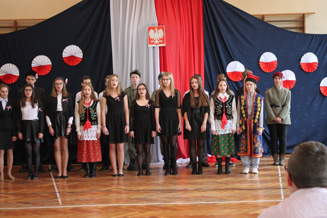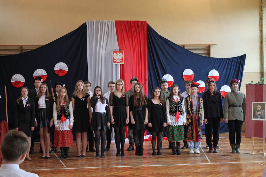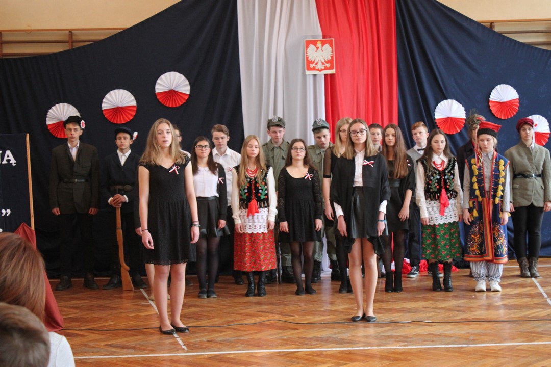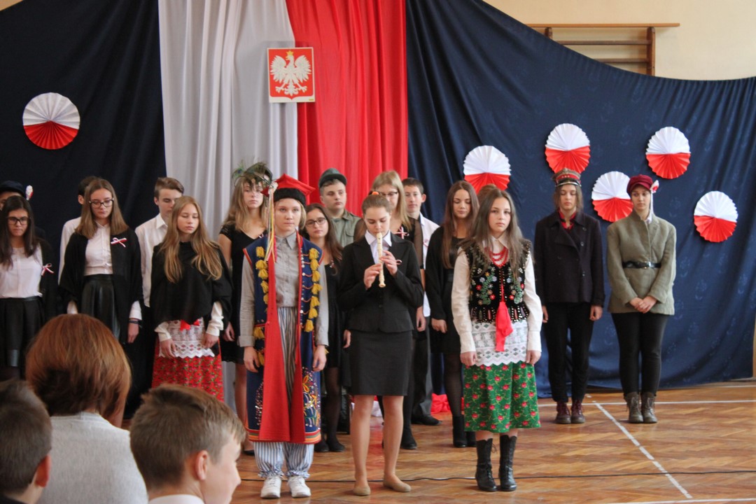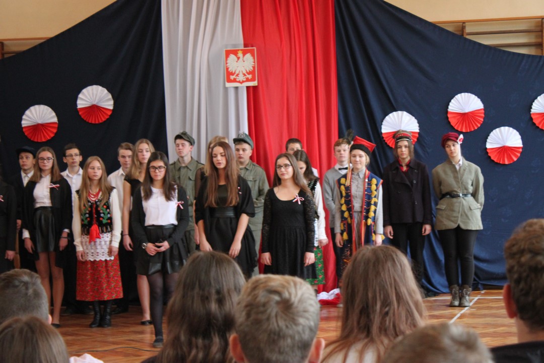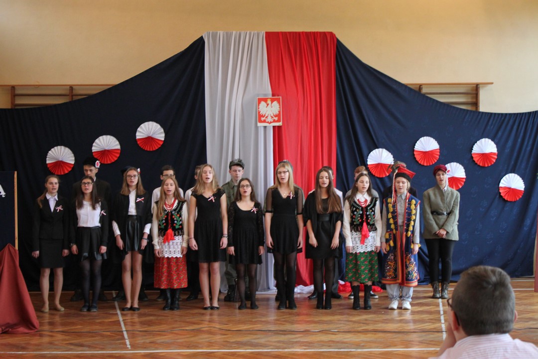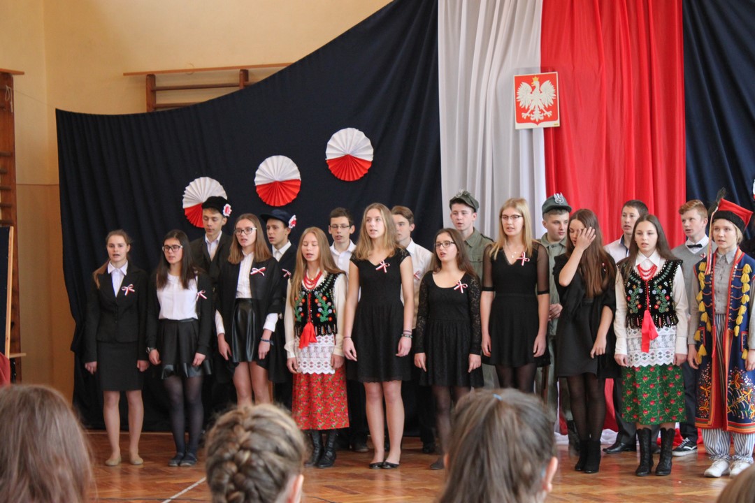 9 listopada 2017 roku uczniowie klasy 3a oraz 3b zaprezentowali społeczności szkolnej montaż poetycko – muzyczny z okazji 99. rocznicy odzyskania niepodległości przez Polskę. Wykorzystując utwory poetyckie i muzyczne gimnazjaliści przeprowadzili zgromadzonych przez lata niewoli narodu polskiego az po odzyskanie niepodległości.