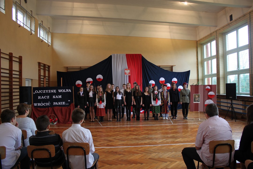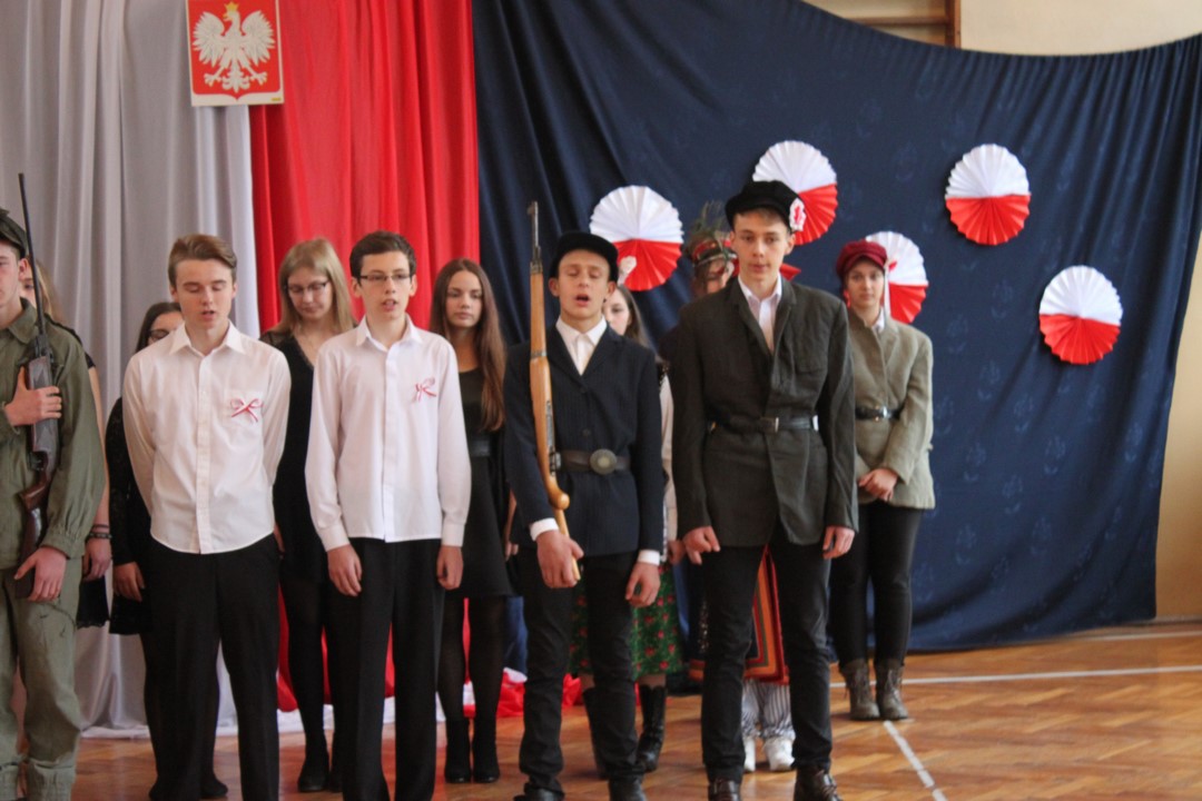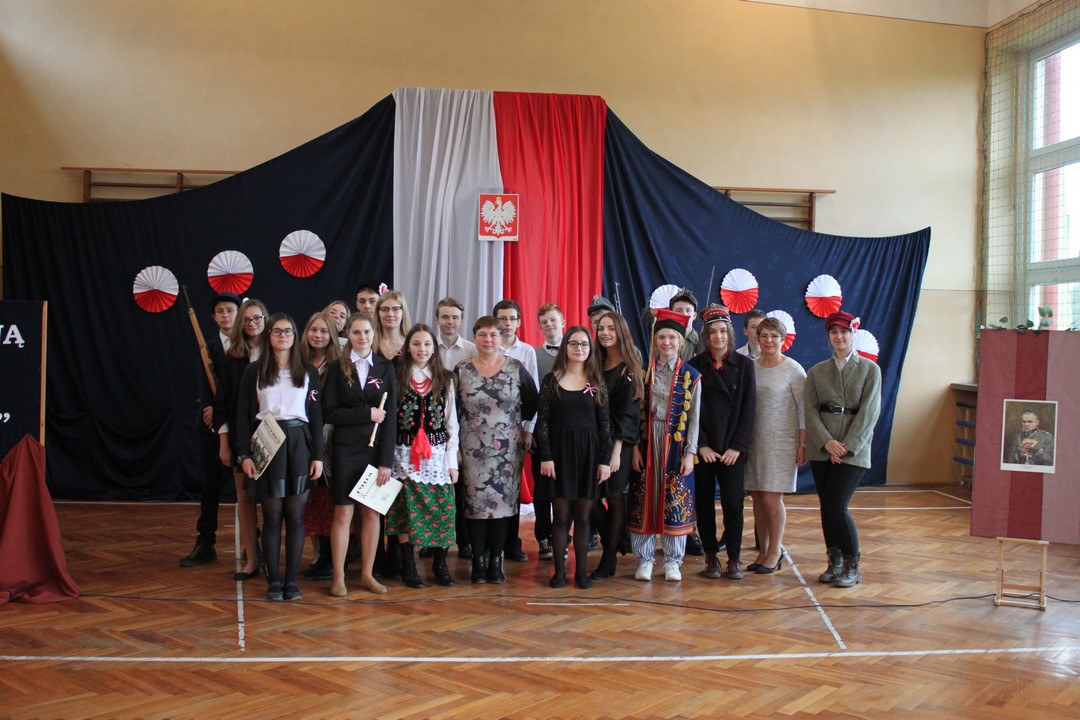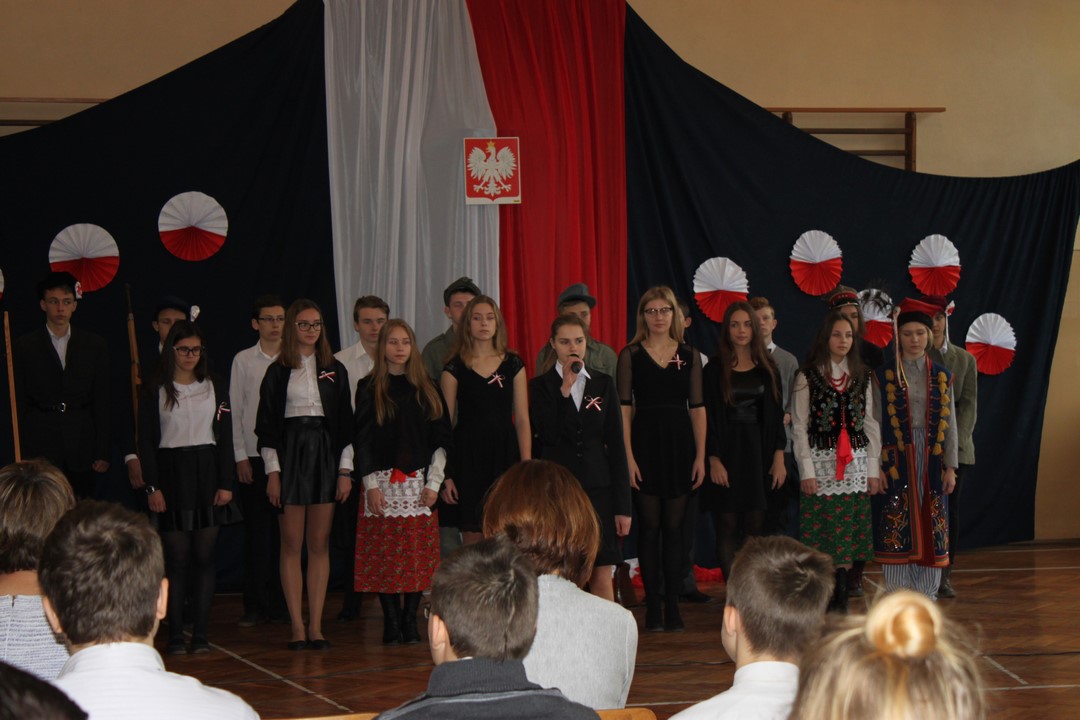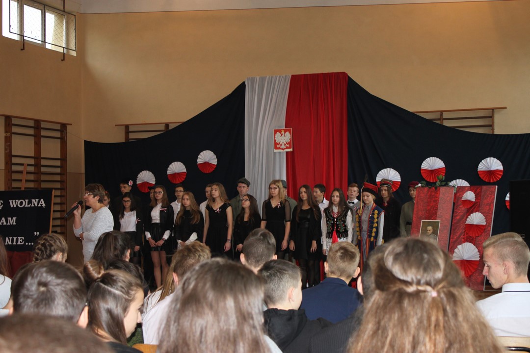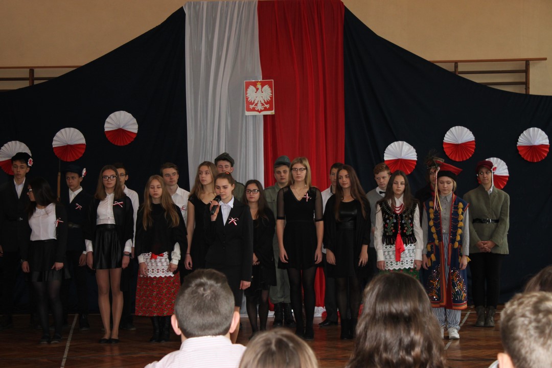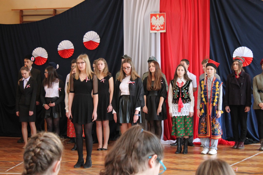 9 listopada 2017 roku uczniowie klasy 3a oraz 3b zaprezentowali społeczności szkolnej montaż poetycko – muzyczny z okazji 99. rocznicy odzyskania niepodległości przez Polskę. Wykorzystując utwory poetyckie i muzyczne gimnazjaliści przeprowadzili zgromadzonych przez lata niewoli narodu polskiego az po odzyskanie niepodległości.