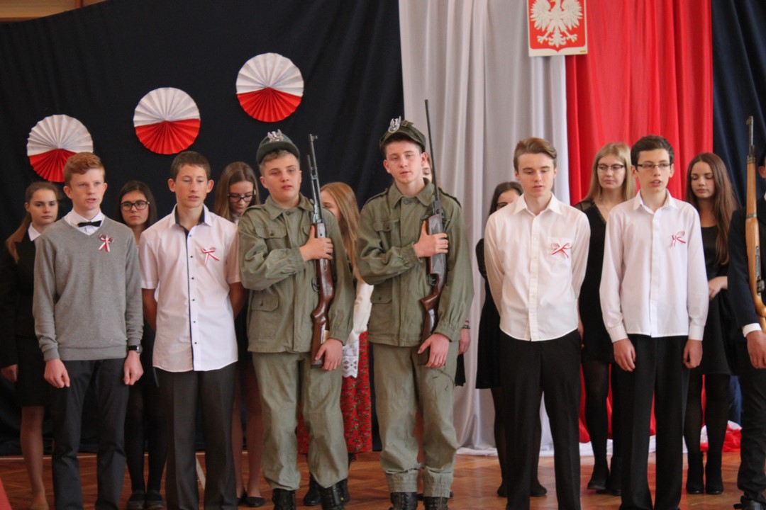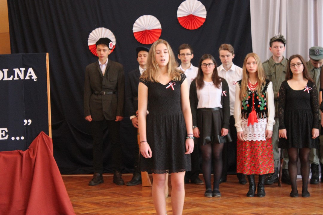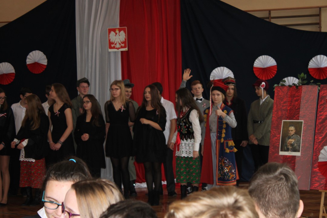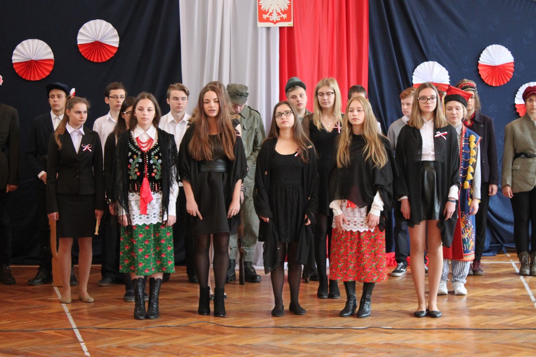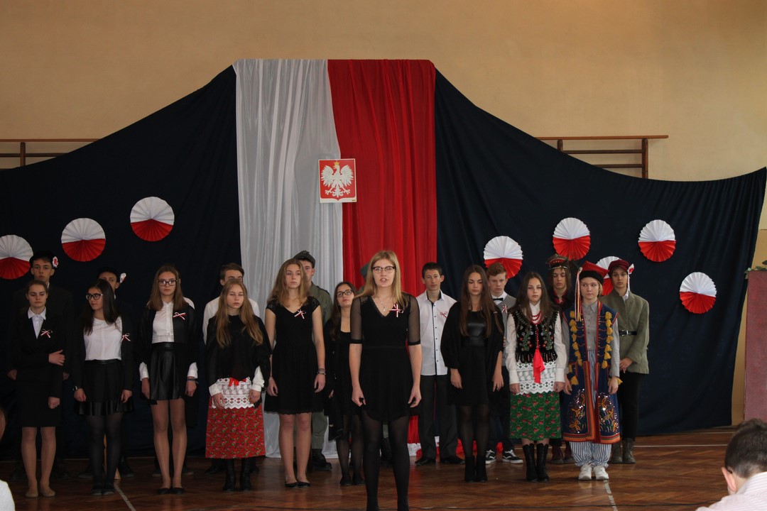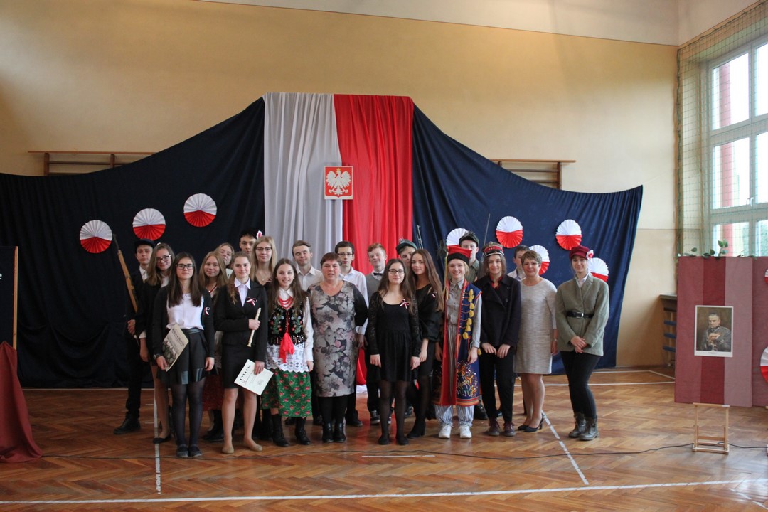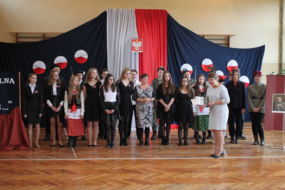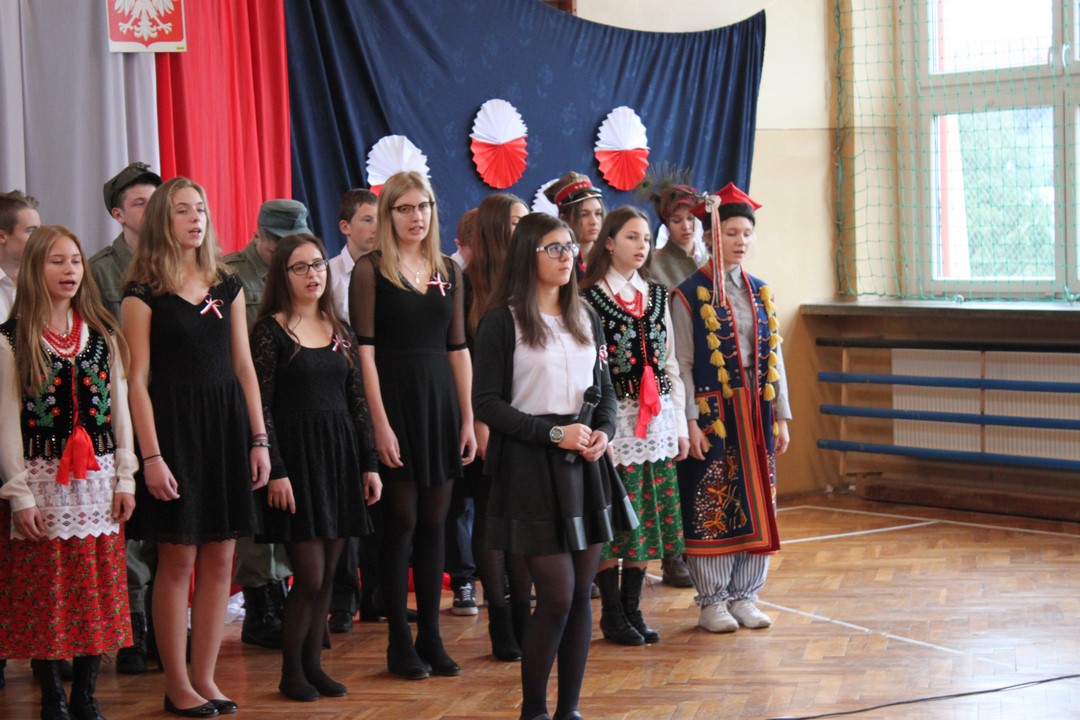 9 listopada 2017 roku uczniowie klasy 3a oraz 3b zaprezentowali społeczności szkolnej montaż poetycko – muzyczny z okazji 99. rocznicy odzyskania niepodległości przez Polskę. Wykorzystując utwory poetyckie i muzyczne gimnazjaliści przeprowadzili zgromadzonych przez lata niewoli narodu polskiego az po odzyskanie niepodległości.