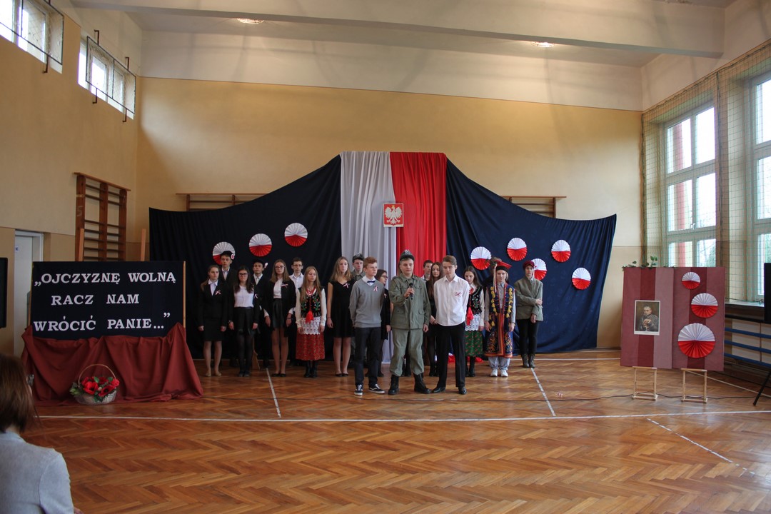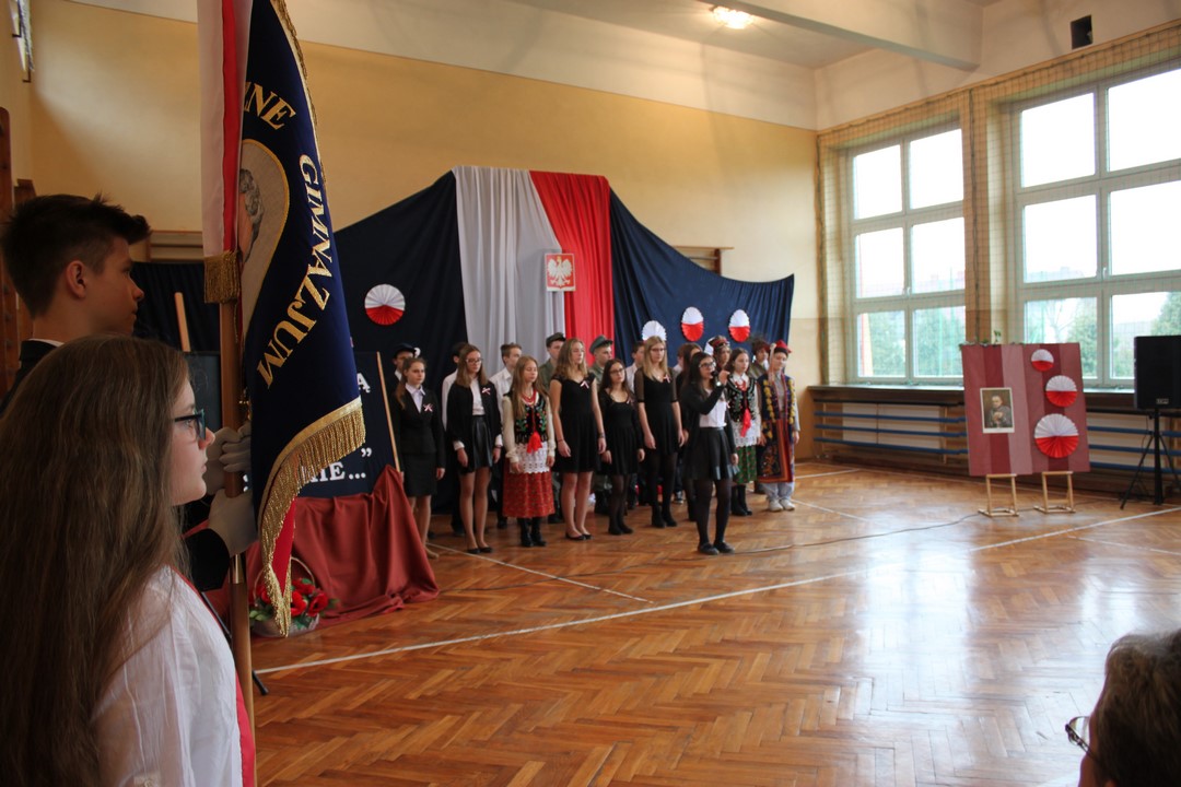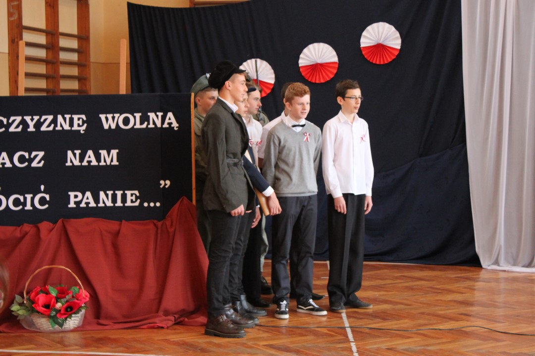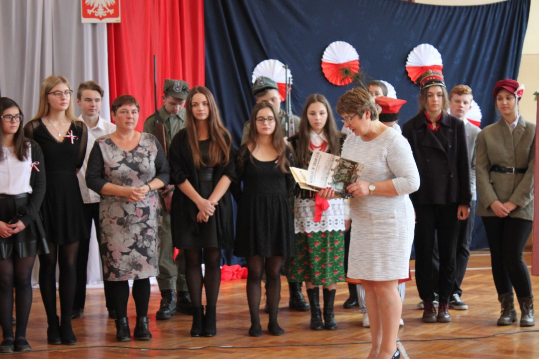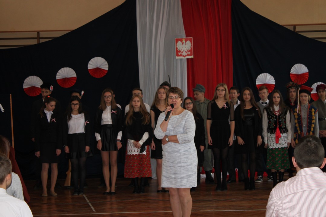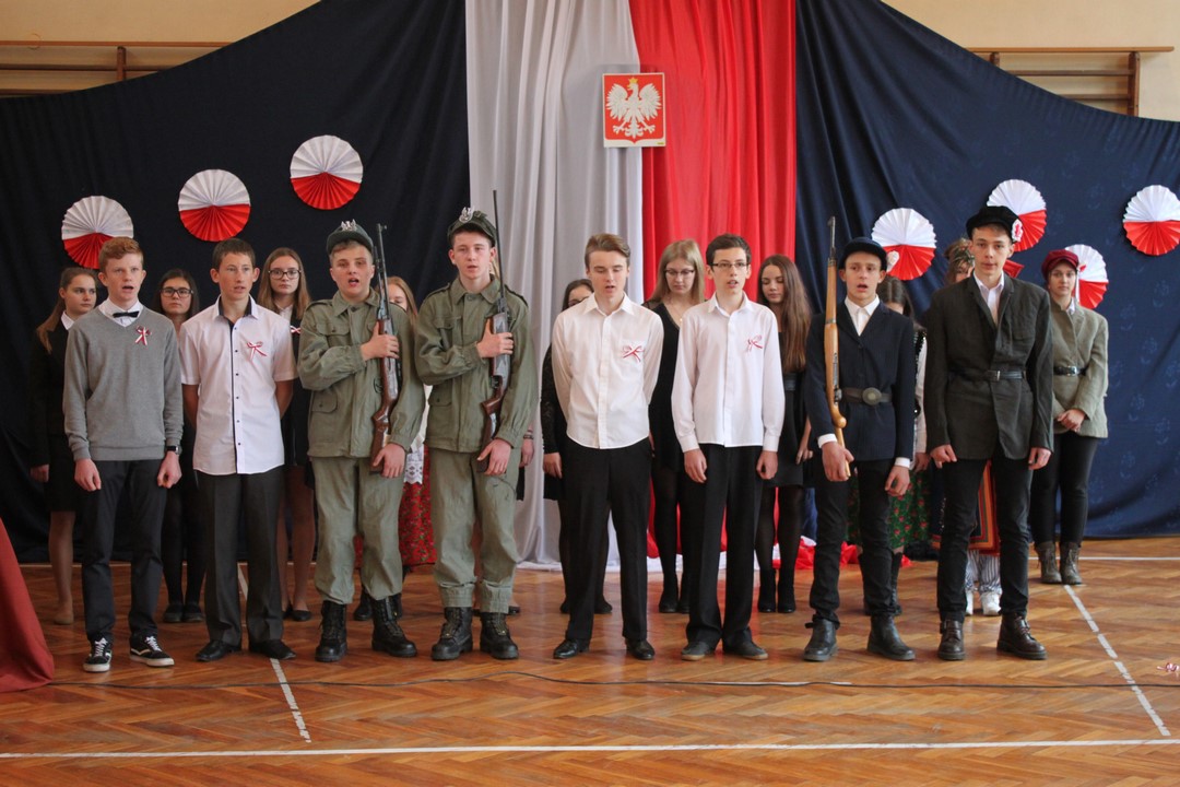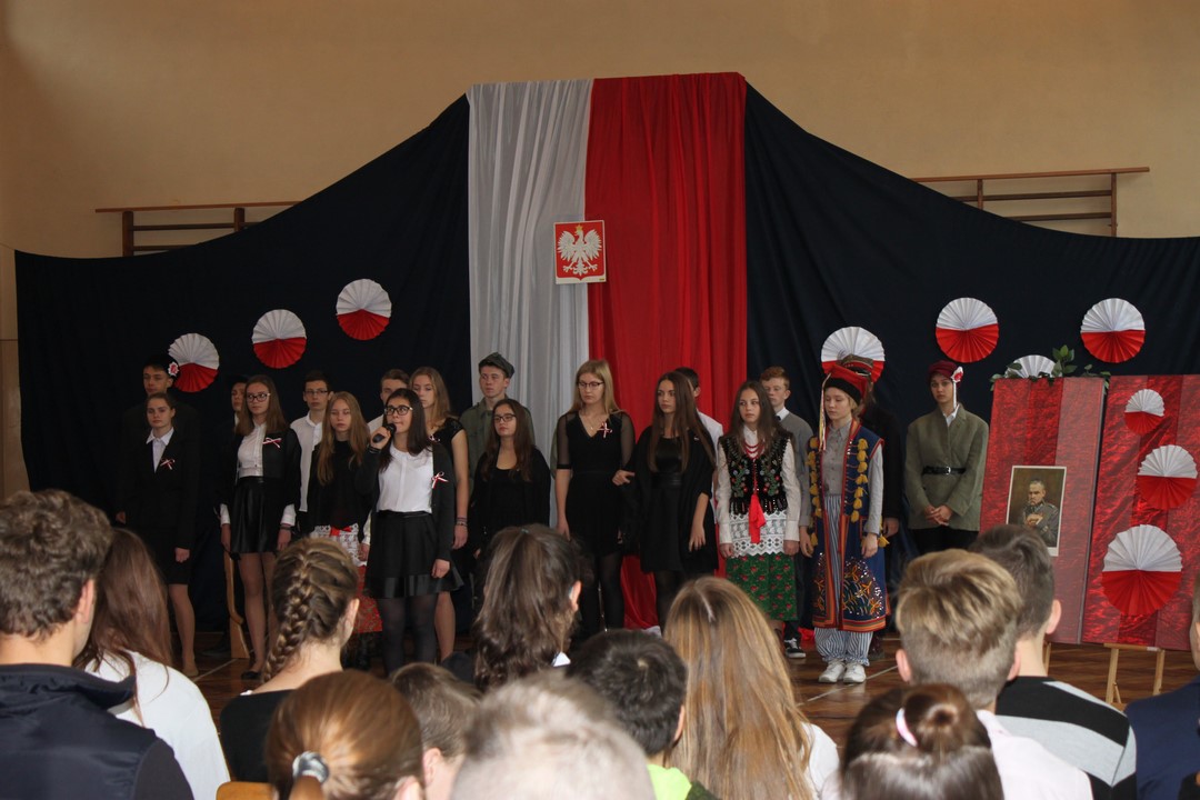 9 listopada 2017 roku uczniowie klasy 3a oraz 3b zaprezentowali społeczności szkolnej montaż poetycko – muzyczny z okazji 99. rocznicy odzyskania niepodległości przez Polskę. Wykorzystując utwory poetyckie i muzyczne gimnazjaliści przeprowadzili zgromadzonych przez lata niewoli narodu polskiego az po odzyskanie niepodległości.