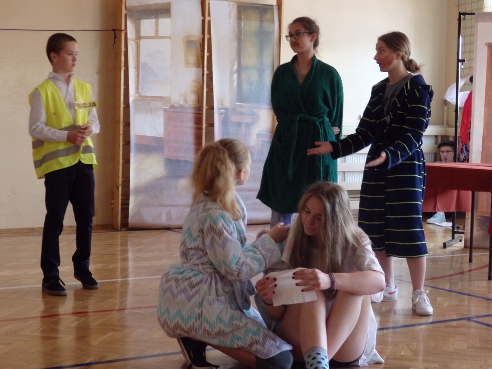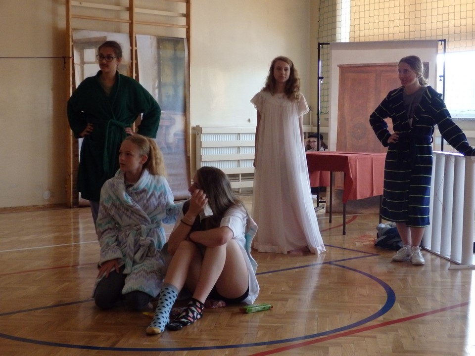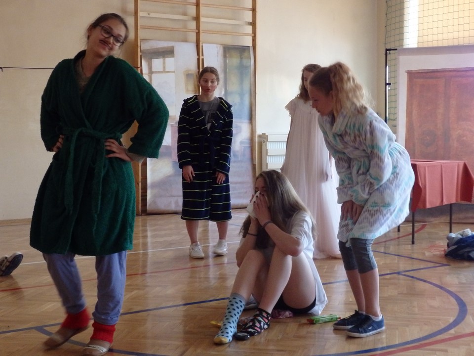 Uczniowie prace do występu rozpoczęli w marcu. Podczas każdej próby było wiele śmiechu i zabawy. Młodzi aktorzy w przygotowanie do występu włożyli wiele pracy. Ich wysiłek został nagrodzony gromkimi brawami publiczności.