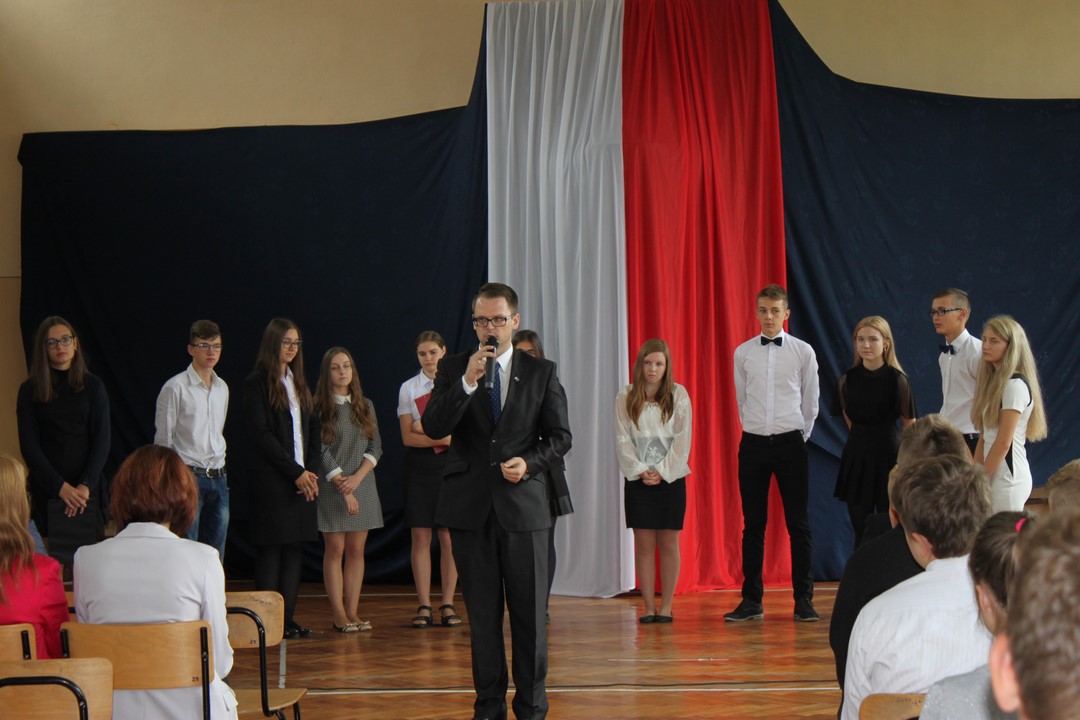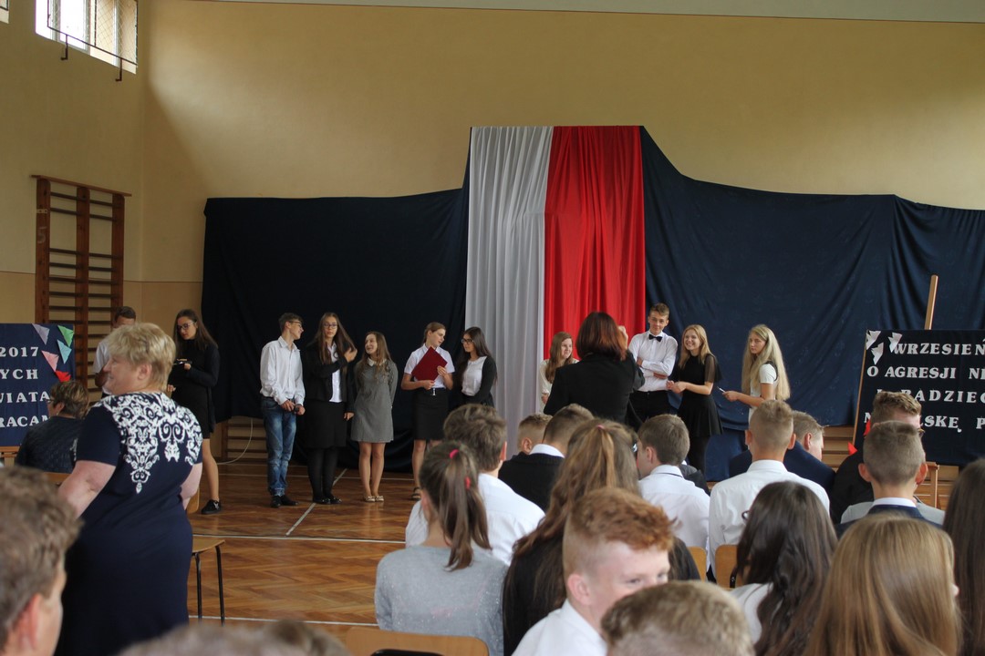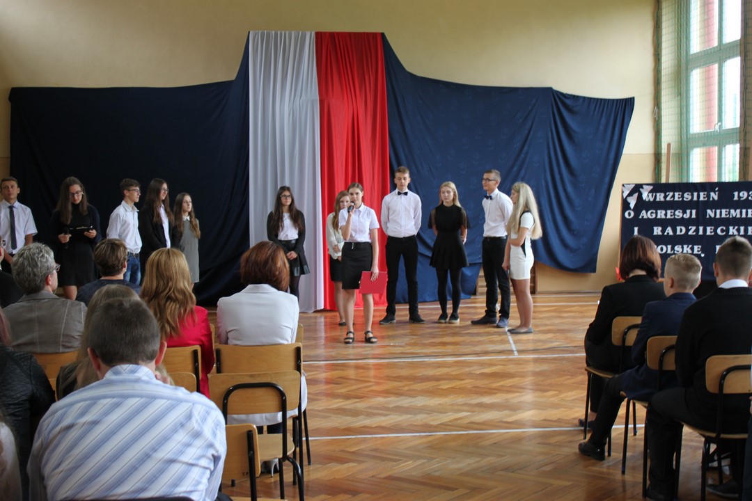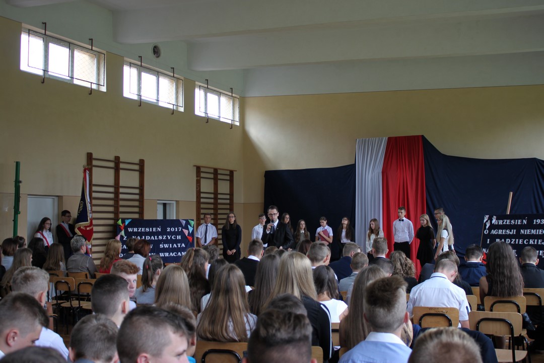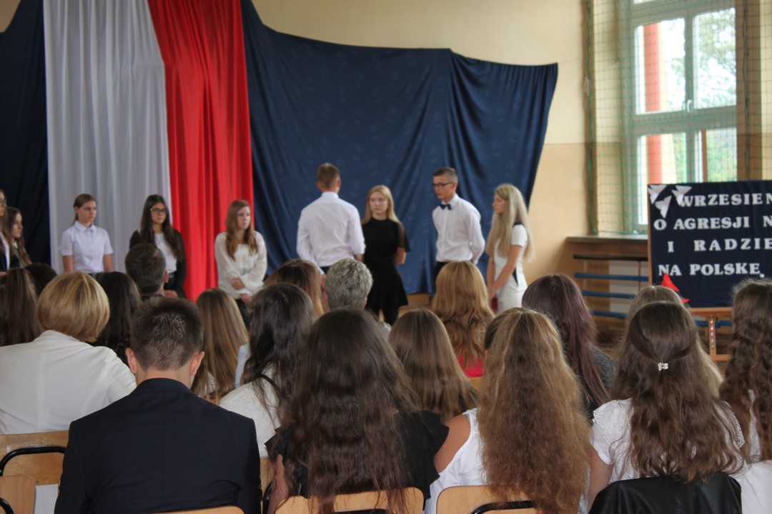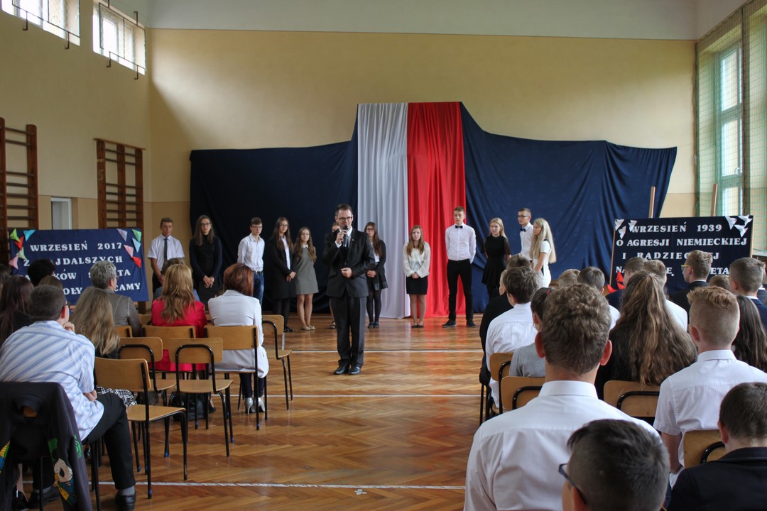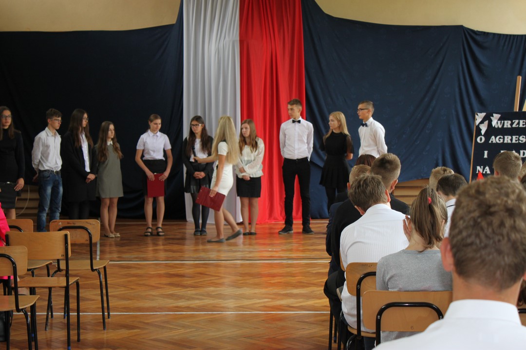 Uczniowie klas gimnazjalnych Szkoły Podstawowej w Wietrzychowicach rozpoczęli nowy rok szkolny w budynku w Miechowicach Wielkich. Zaproszenie na uroczystość przyjął Wójt Gminy Wietrzychowice Tomasz Banek oraz pani wicewójt Sabina Nowak. Zaproszonych gości, młodzież szkolną, nauczycieli i pracowników powitała serdecznie dyrektor Zespołu Szkolno – Przedszkolnego Jadwiga Łucarz. Uczniowie klasy 3b przedstawili program artystyczny poświęcony agresji niemieckiej i radzieckiej na Polskę we wrześniu 1939 roku, przygotowany pod opieką pań: Marzeny Lis i Lucji Kołaczyńskiej. Wójt Gminy życzył młodzieży i pracownikom samych sukcesów.
