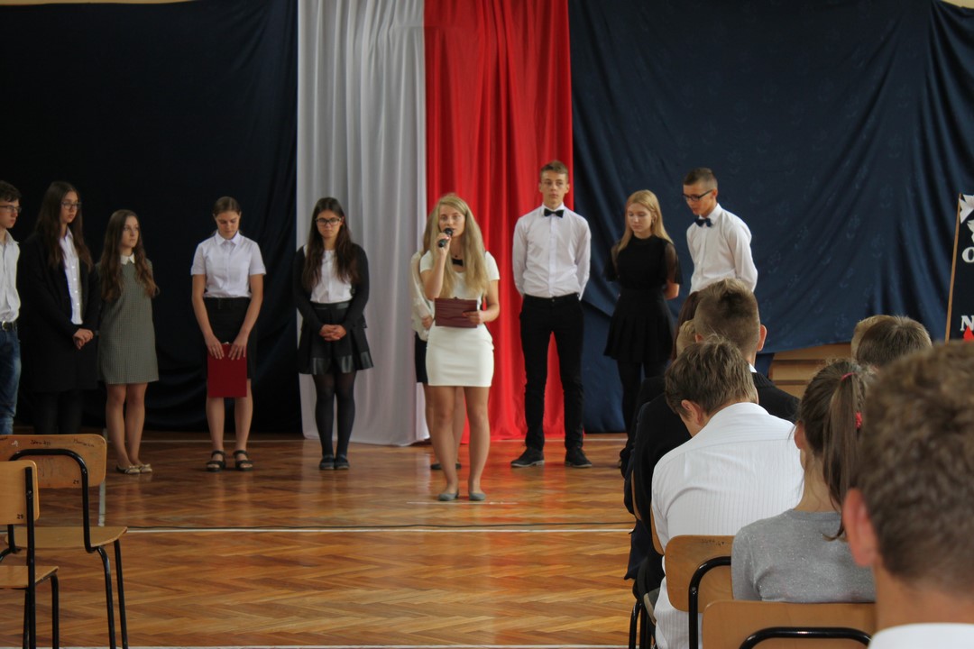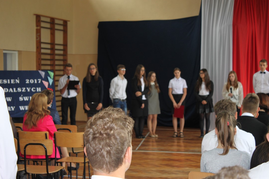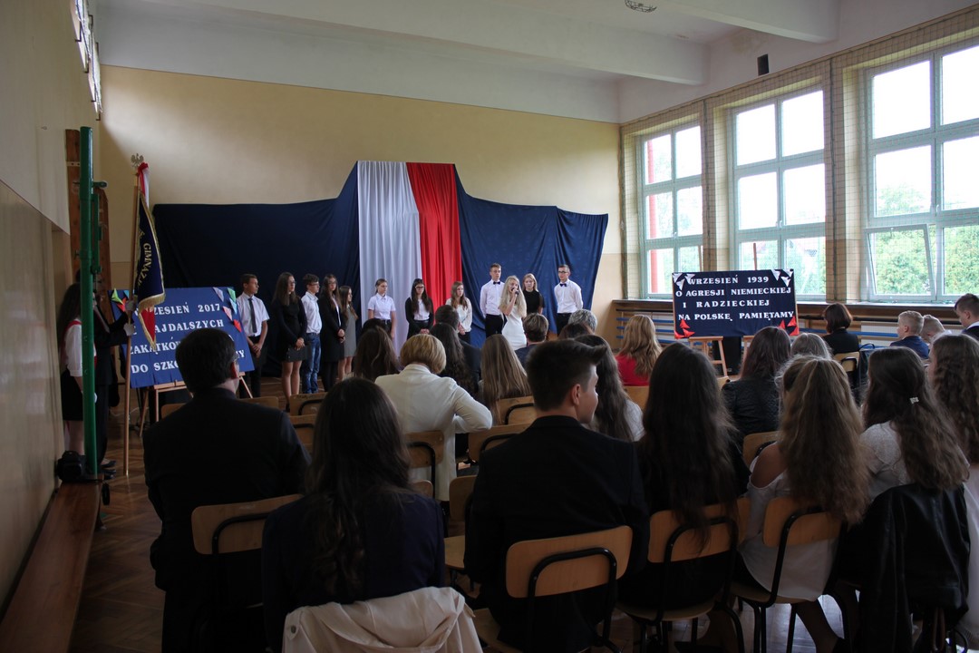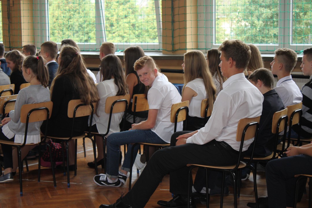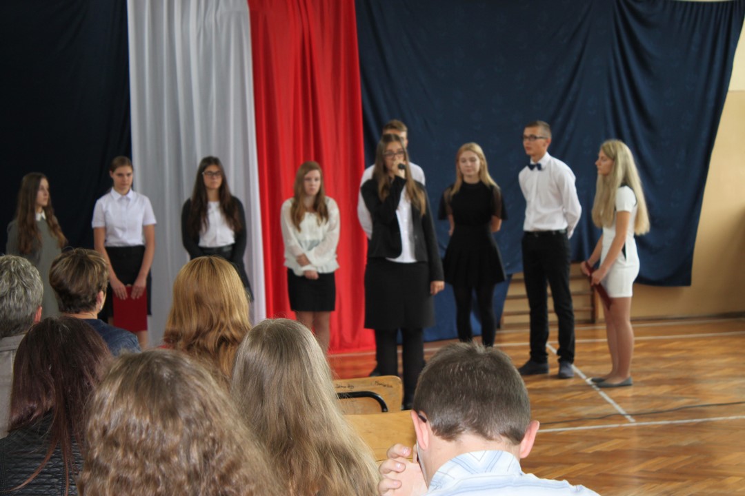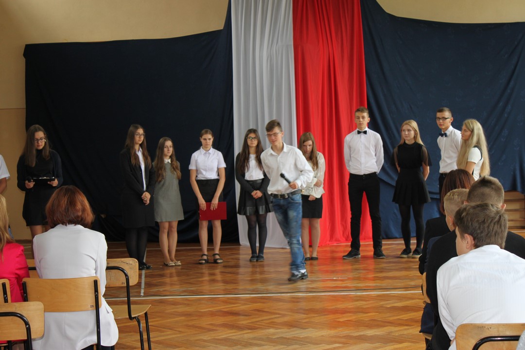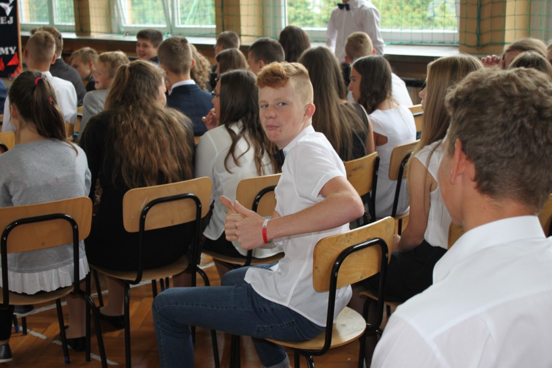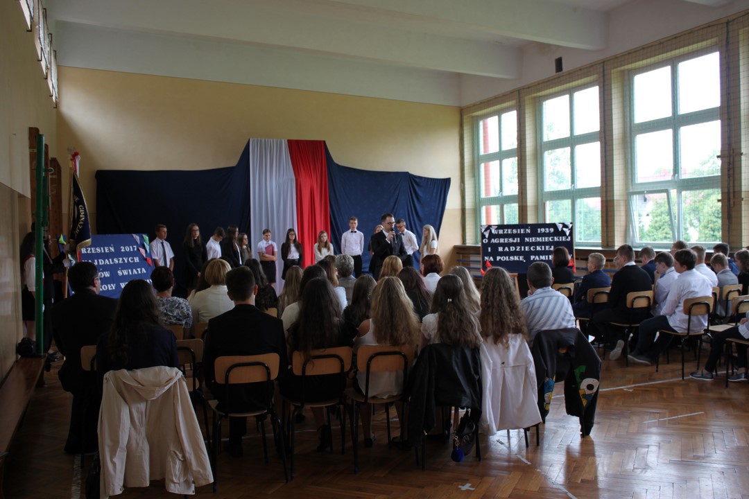 Uczniowie klas gimnazjalnych Szkoły Podstawowej w Wietrzychowicach rozpoczęli nowy rok szkolny w budynku w Miechowicach Wielkich. Zaproszenie na uroczystość przyjął Wójt Gminy Wietrzychowice Tomasz Banek oraz pani wicewójt Sabina Nowak. Zaproszonych gości, młodzież szkolną, nauczycieli i pracowników powitała serdecznie dyrektor Zespołu Szkolno – Przedszkolnego Jadwiga Łucarz. Uczniowie klasy 3b przedstawili program artystyczny poświęcony agresji niemieckiej i radzieckiej na Polskę we wrześniu 1939 roku, przygotowany pod opieką pań: Marzeny Lis i Lucji Kołaczyńskiej. Wójt Gminy życzył młodzieży i pracownikom samych sukcesów.