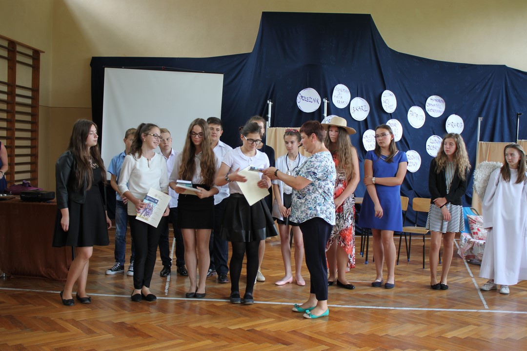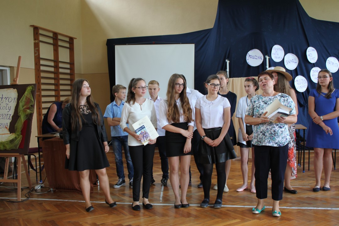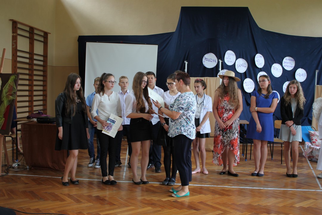 13 czerwca 2017 roku w siedzibie Centrum Edukacyjnego IPN „ Przystanek Historia” w Krakowie odbyło się uroczyste zakończenie V edycji konkursu „ Kresy – polskie ziemie wschodnie w XX wieku”. Na uroczystość zostali zaproszeni finaliści wraz z opiekunami. W tym kilkudziesięcioosobowym gronie uczniów szkół ponadgimnazjalnych i gimnazjów woj. małopolskiego znalazły się uczennice naszego gimnazjum: Emilia Wojciechowska z klasy 3b oraz Urszula Stryczek, Ewa Piekut i Klaudia Wiekierak z klasy 2a, a także nauczycielka historii Iwona Wojciechowska.
