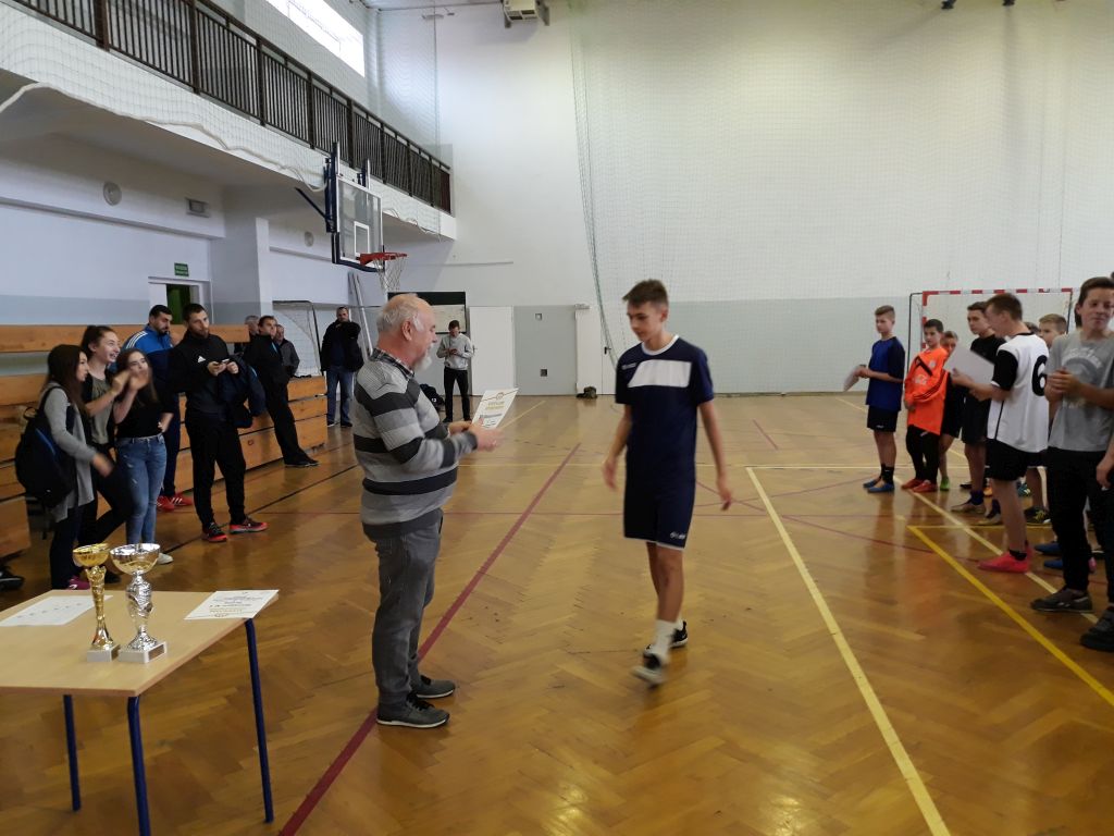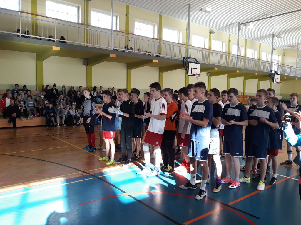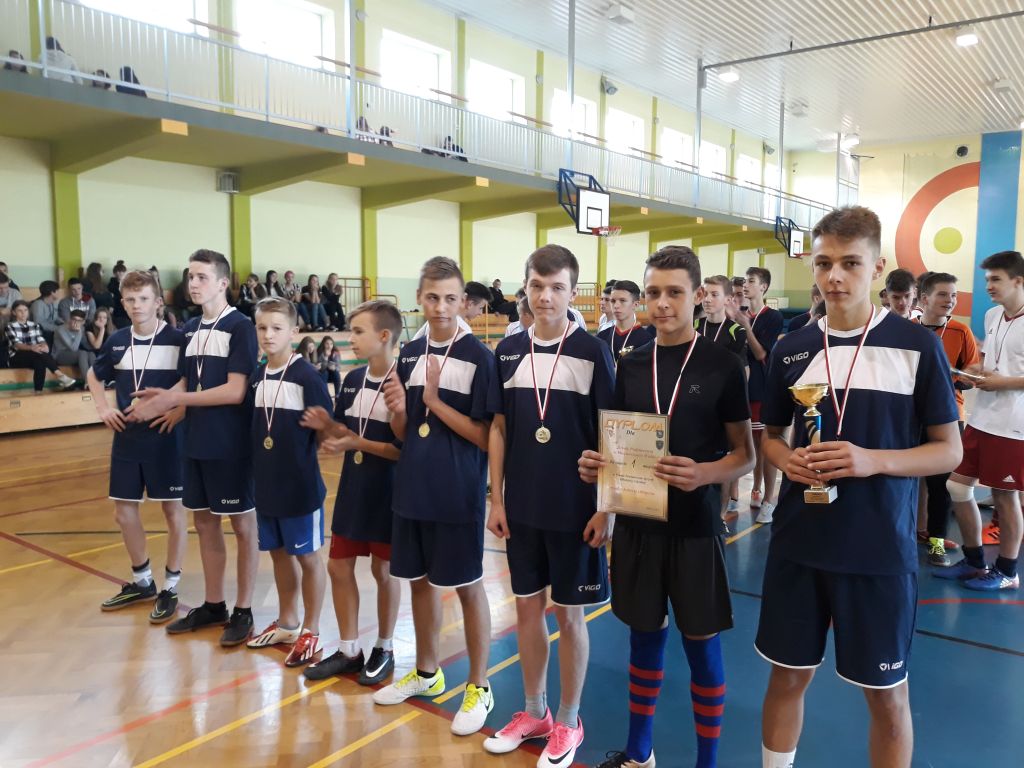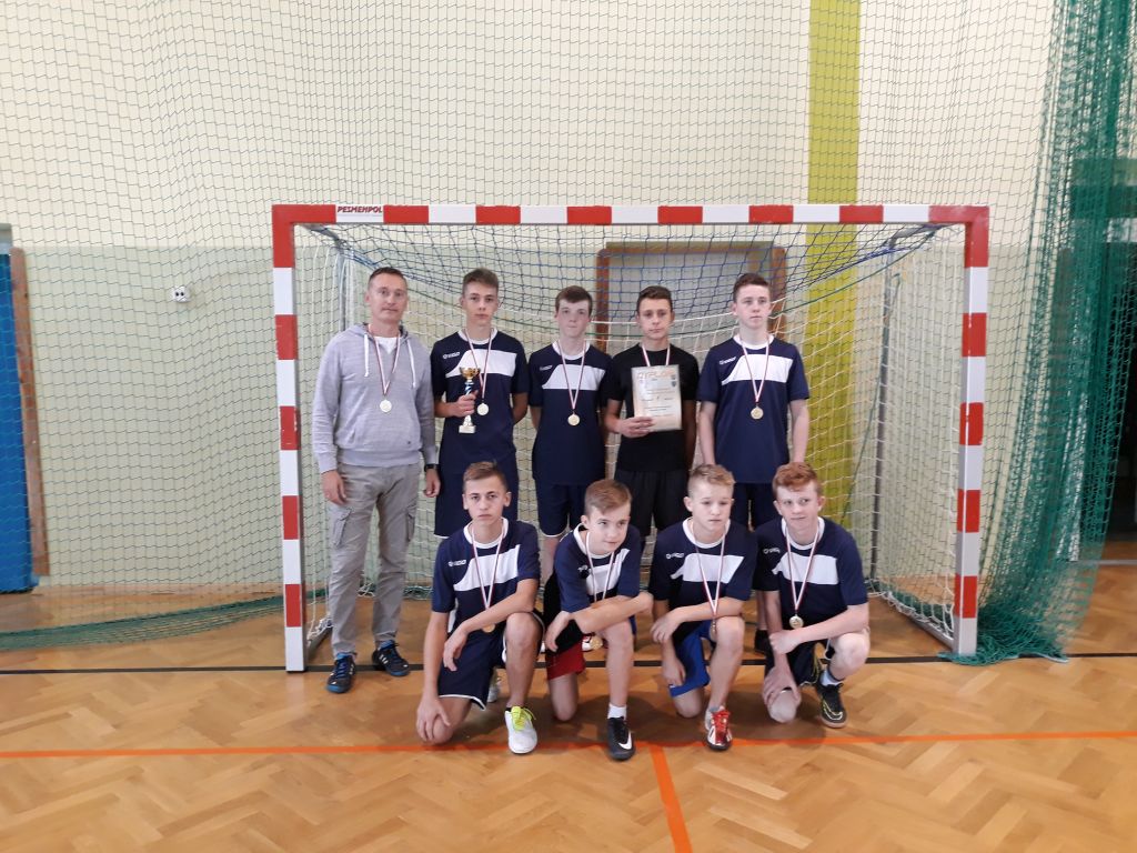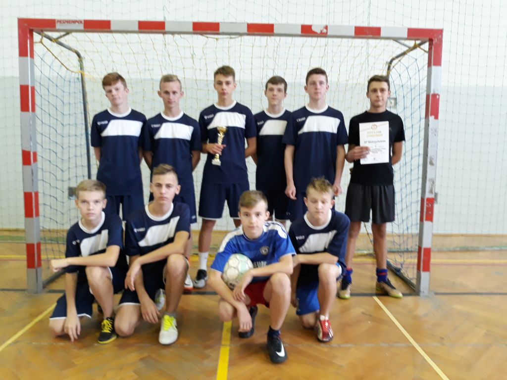 Poziom w grupie niezwykle wyrównany, ale ostatecznie nasi chłopcy po dwóch wygranych i remisie mogli przystąpić do spotkania, w którym stawką był awans do finału powiatowego. Po bardzo dobrym i skutecznym meczu udało się pokonać rówieśników z Zaczarnia i cieszyć się z upragnionego awansu. Tydzień później 31 października przyszedł czas na wielki finał, który rozegrany został w hali sportowej w Pleśnej. Tego dnia nikt nie był w stanie zatrzymać głodnych sukcesu reprezentantów naszej szkoły. Chłopcy zagrali świetny turniej, nie tracąc w trzech meczach ani jednej bramki. Remis 0:0 z Zakliczynem, następnie zwycięstwa po 5:0 z Żabnem i Pleśną pozwoliły cieszyć się z pierwszego miejsca i tytułu Mistrza Powiatu Tarnowskiego.    Kolejny etap rozgrywek to finał rejonowy, który został rozegrany 9 listopada w hali Zespołu Szkół w Borzęcinie. W zawodach tych wzięli udział zwycięzcy powiatu tarnowskiego – Miechowice Wielkie, brzeskiego – Borzęcin, dąbrowskiego – Olesno i miasta Tarnów – Zespół Szkół Sportowych w Tarnowie. Po bardzo emocjonującym turnieju uczniowie naszej szkoły zajęli drugie miejsce, przegrywając tylko 2:1 z bardzo mocną drużyną z Tarnowa, która zwycięskiego gola strzeliła grając z przewagą jednego zawodnika. Wielkie gratulację i podziękowania dla chłopców za wysiłek, niezwykłe zaangażowanie i serce pozostawione na polu gry.