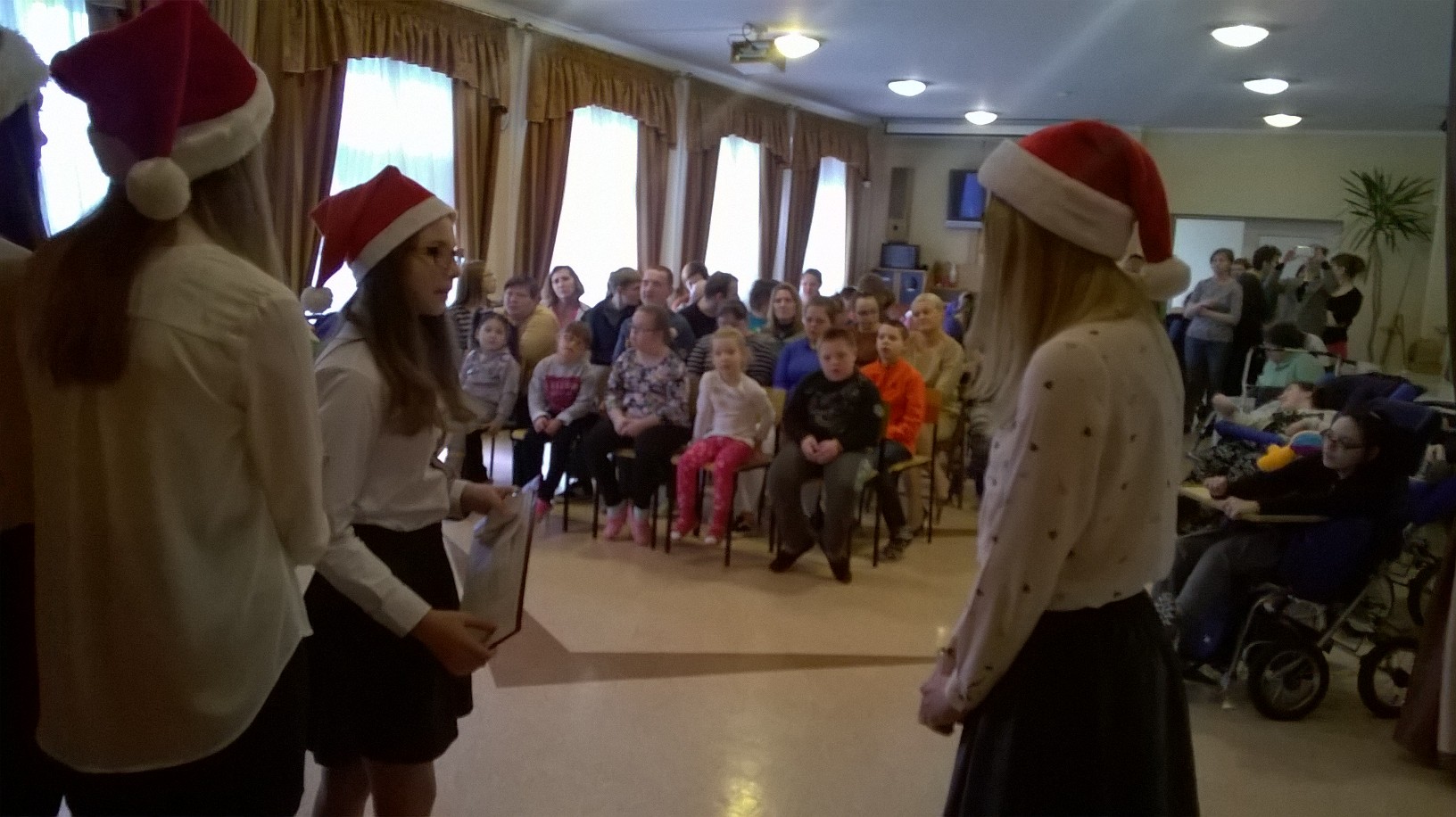 Przedświąteczna atmosfera sprawia, że bardziej niż zwykle chcemy przybliżyć się do drugiego człowieka i dać mu odrobinę szczęścia. Uczniowie gimnazjum, wraz z opiekunami przygotowali krótkie przedstawienie mikołajkowo – świąteczne dla dzieci z Ośrodka Rehabilitacyjnego w Jadownikach Mokrych, aby wprowadzić w klimat zbliżających się świąt Bożego Narodzenia i miło spędzić czas. Ciekawe dialogi i znane piosenki sprawiły, że wszyscy włączyli się w wspólną zabawę. Gimnazjaliści spostrzegli, że bycie dla innych jest najlepszym prezentem – tę lekcję zapamiętają już na całe życie.