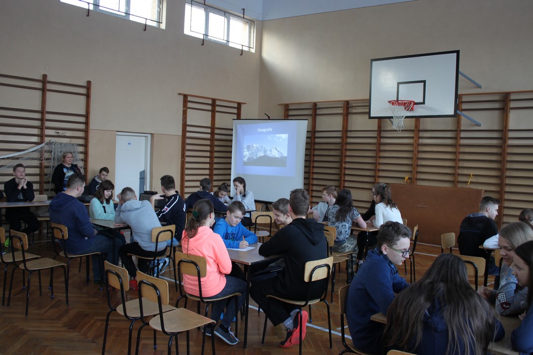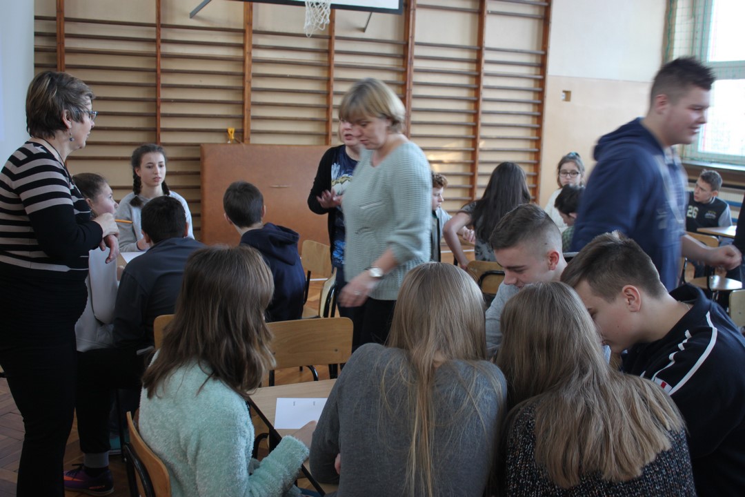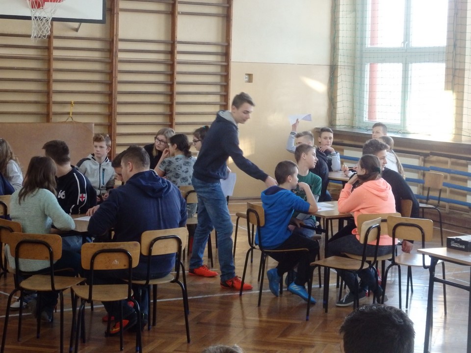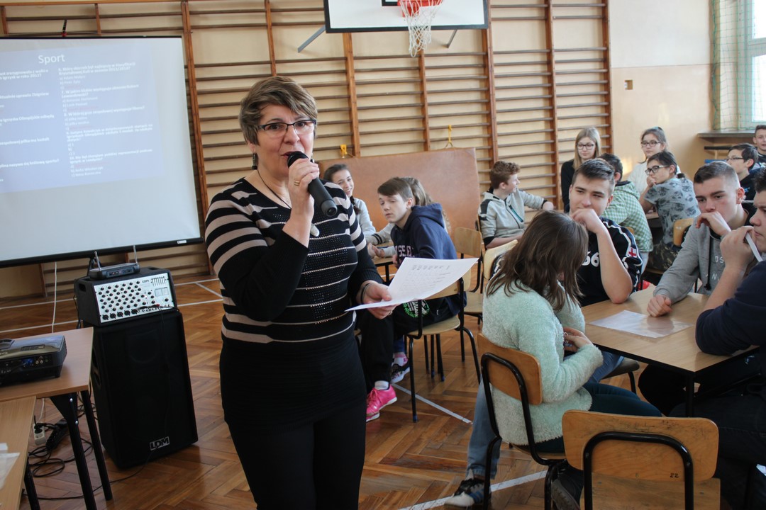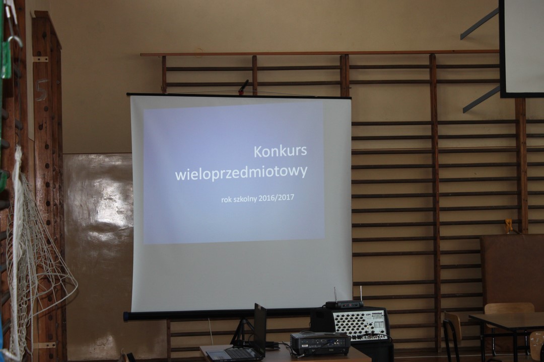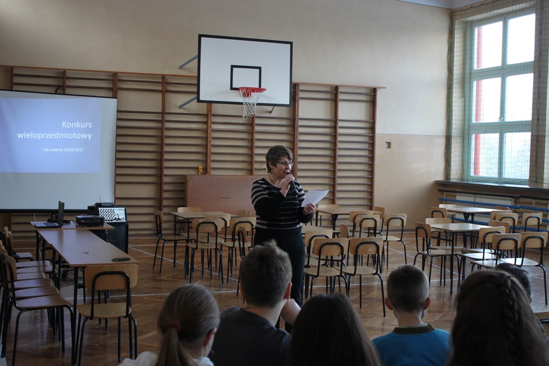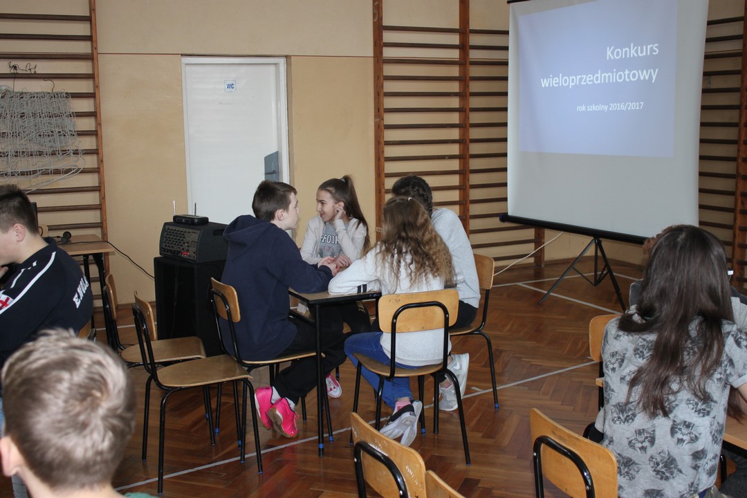 Tradycją gimnazjum, wprowadzoną wiele lat temu przez pana Zbigniewa Podlackiego jest Turniej Wieloprzedmiotowy. W  tym roku organizacją Turnieju zajęła się pani Agnieszka Para. Młodzież podzielona na drużyny rozwiązywała zadania z zakresu: matematyki, biologii, chemii, fizyki, geografii, muzyki, sportu, języka ojczystego i obcego. Jest to typowa nauka przez zabawę. Młodzież bawiła się świetnie. Uczniowie, którzy akurat nie rozwiązywali zadań dopingowali kolegów. Zwycięzcami okazali się uczniowie klasy 2a. Pani dyrektor Jadwiga Łucarz serdecznie pogratulowała wszystkim uczestnikom Turnieju za wspaniałą zabawę, doskonałe współzawodnictwo i przede wszystkim ogromną wiedzę. Pani Agnieszce podziękowała za przygotowanie zadań i organizację turnieju.