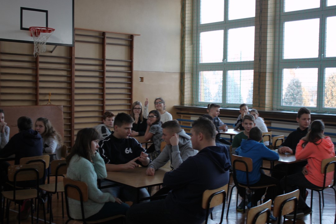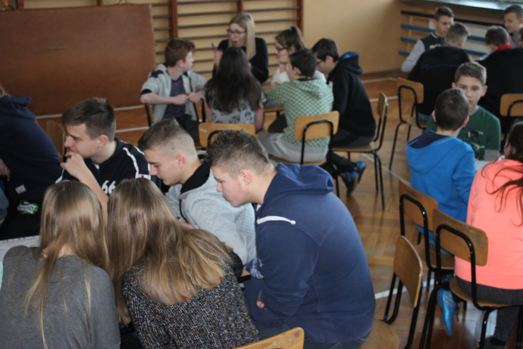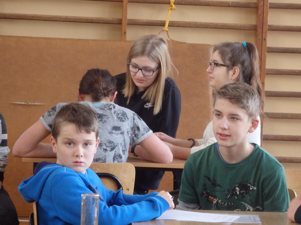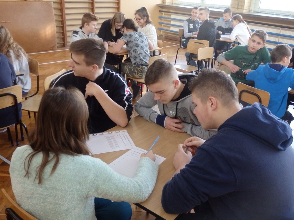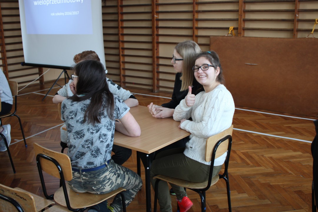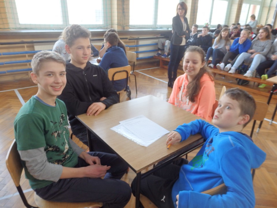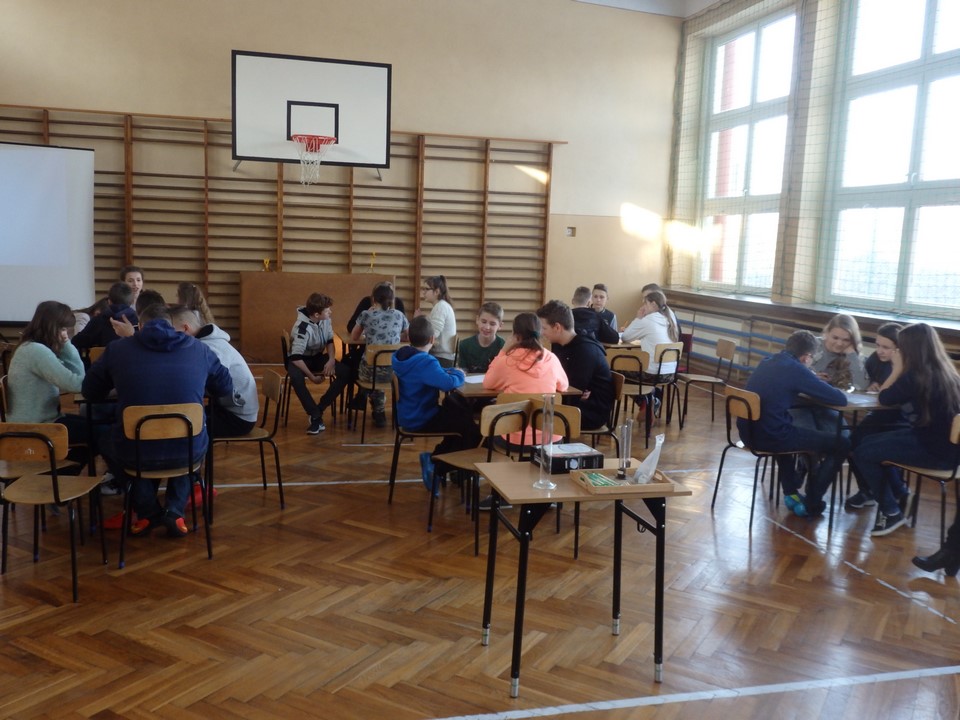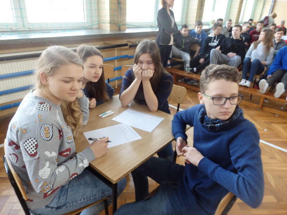 Tradycją gimnazjum, wprowadzoną wiele lat temu przez pana Zbigniewa Podlackiego jest Turniej Wieloprzedmiotowy. W  tym roku organizacją Turnieju zajęła się pani Agnieszka Para. Młodzież podzielona na drużyny rozwiązywała zadania z zakresu: matematyki, biologii, chemii, fizyki, geografii, muzyki, sportu, języka ojczystego i obcego. Jest to typowa nauka przez zabawę. Młodzież bawiła się świetnie. Uczniowie, którzy akurat nie rozwiązywali zadań dopingowali kolegów. Zwycięzcami okazali się uczniowie klasy 2a. Pani dyrektor Jadwiga Łucarz serdecznie pogratulowała wszystkim uczestnikom Turnieju za wspaniałą zabawę, doskonałe współzawodnictwo i przede wszystkim ogromną wiedzę. Pani Agnieszce podziękowała za przygotowanie zadań i organizację turnieju.
