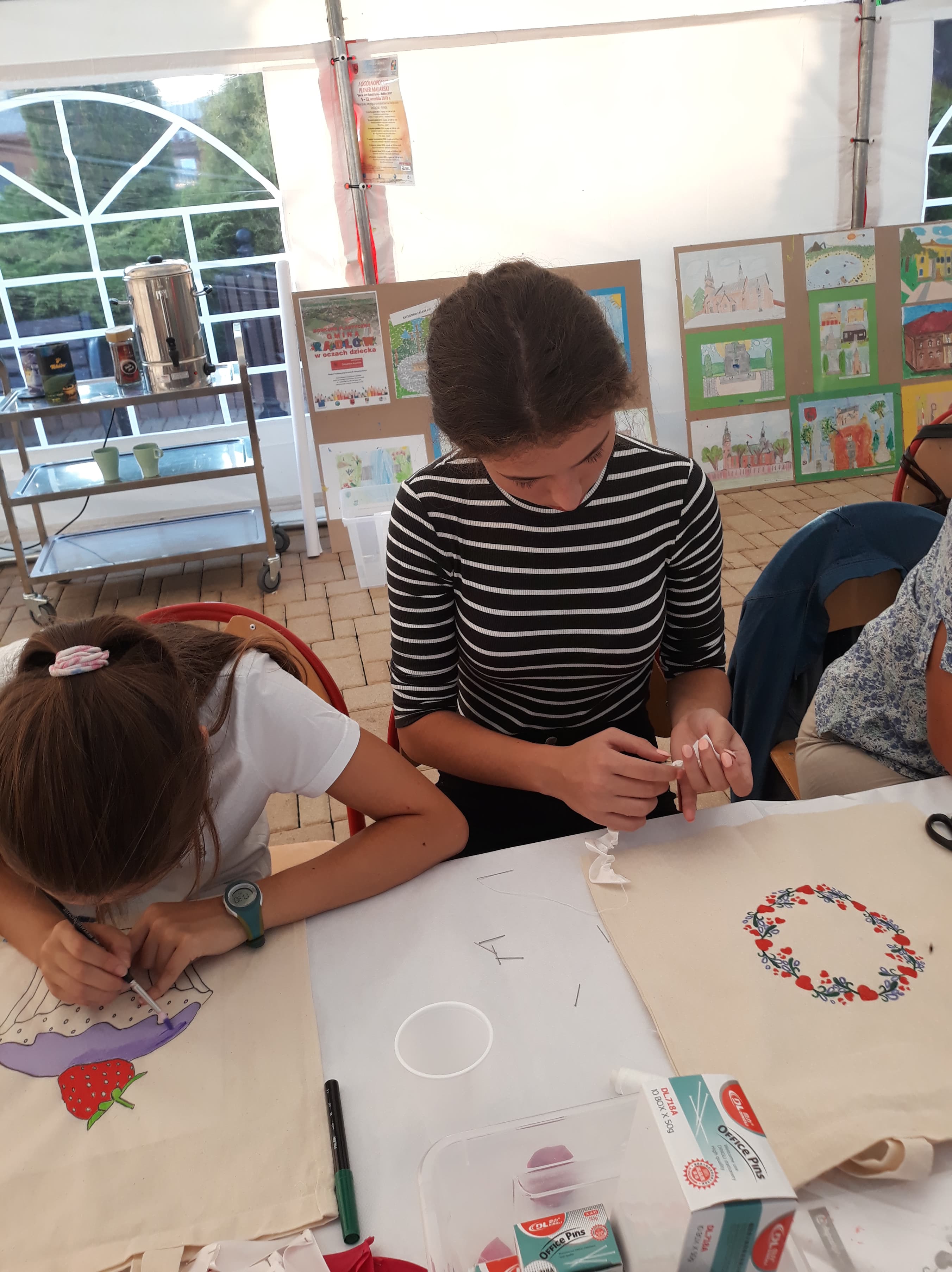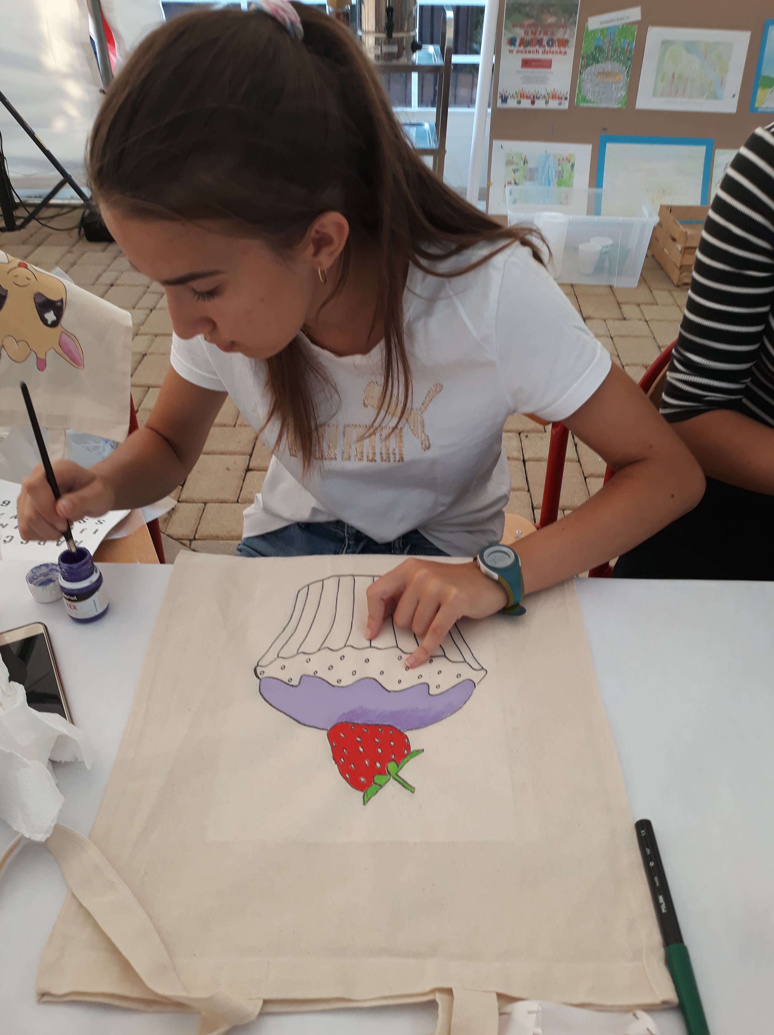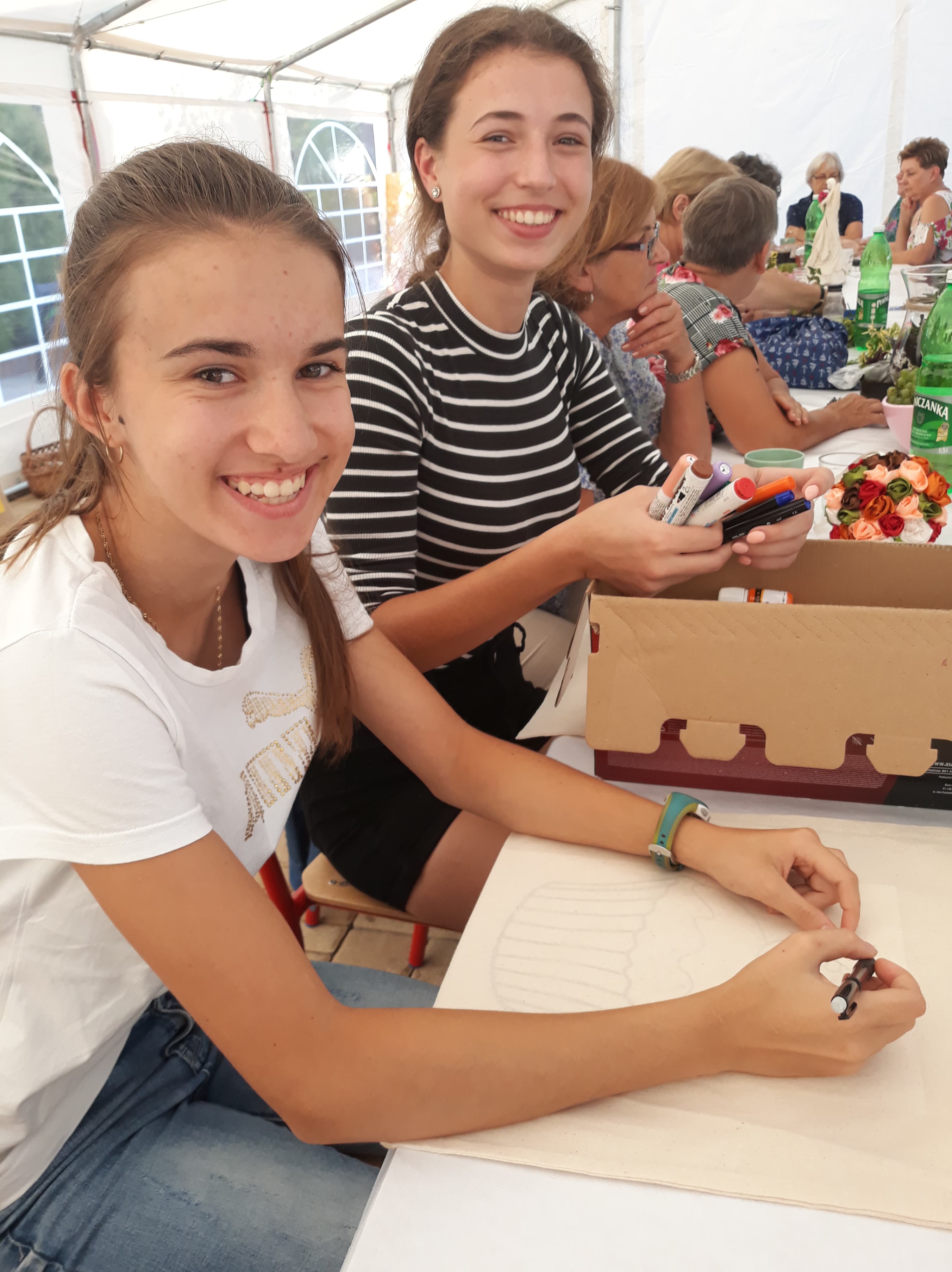 17 września gimnazjalistki Martyna Michniak, Karolina Dębińska, Angelika Podsada pod opieką Moniki Kosman wzięły udział w warsztatach malarskich i rzemiosła artystycznego, imprezie towarzyszącej I Ogólnopolskiemu Plenerowi Malarskiemu w Radłowie. Zajęcia poprowadziła pani mgr Edyta Kożuch – pedagog z Ośrodka Wsparcia Dziennego w Radłowie, a dziewczęta mogły własnoręcznie wykonać i ozdobić torby na zakupy.