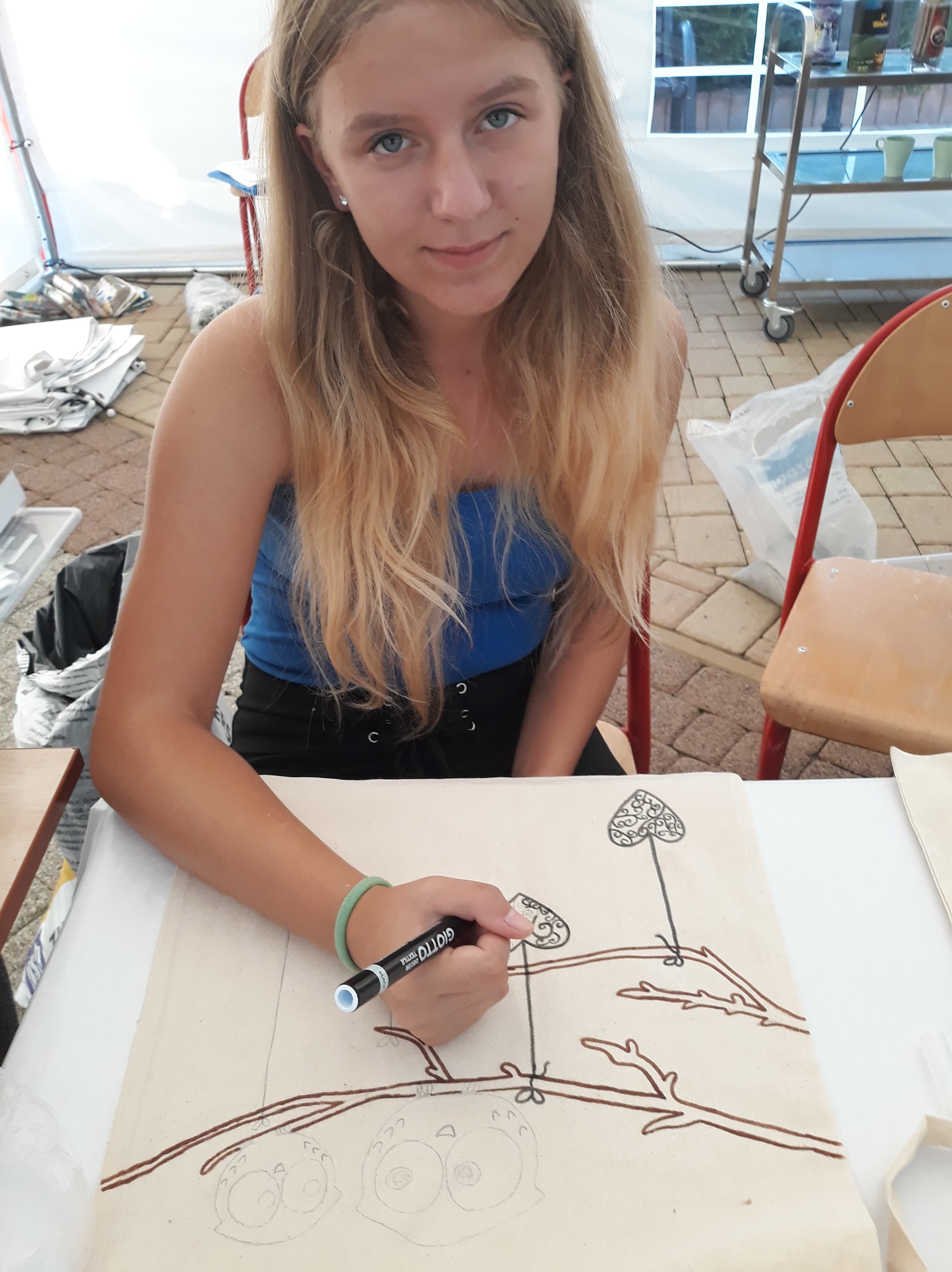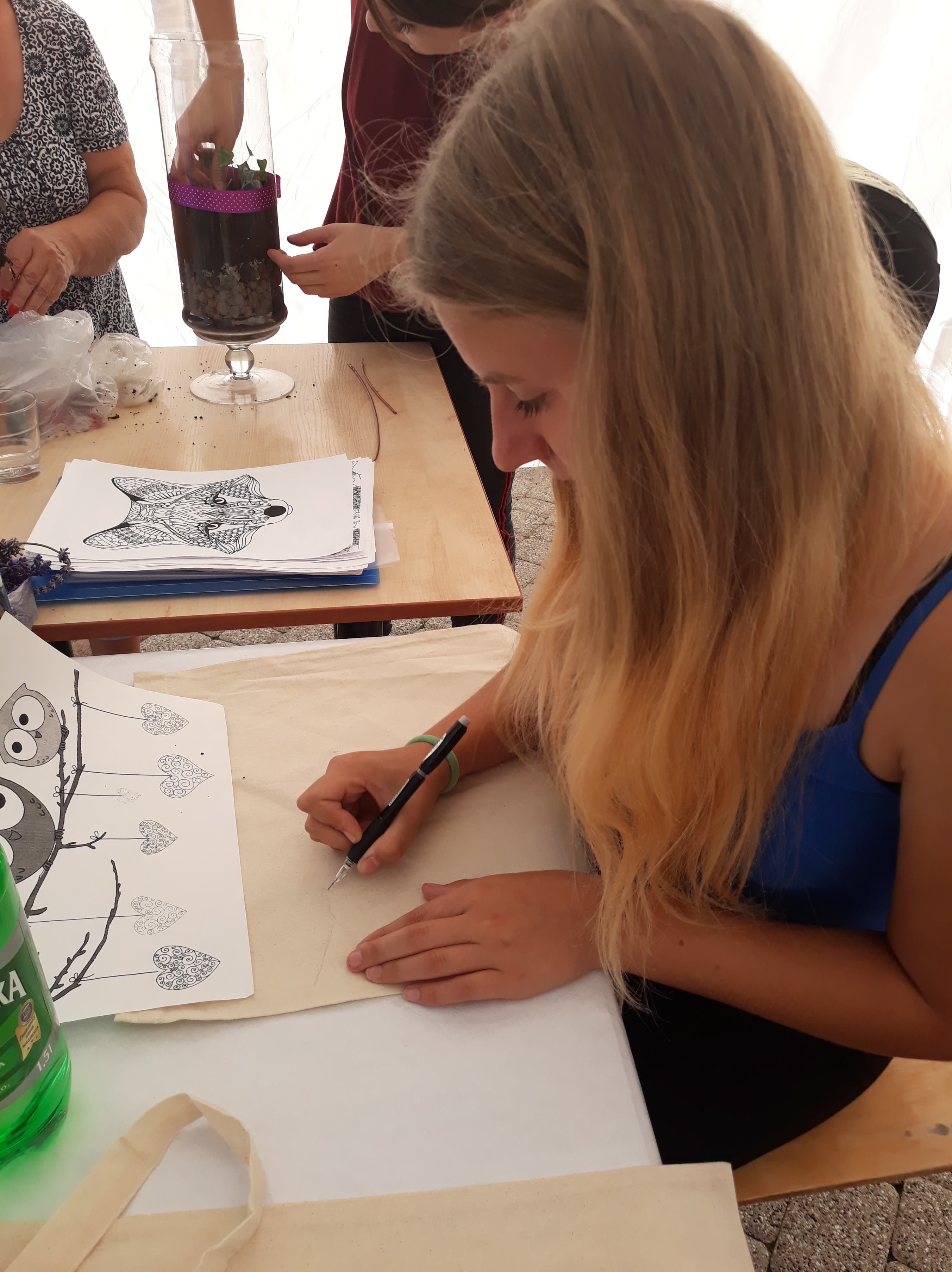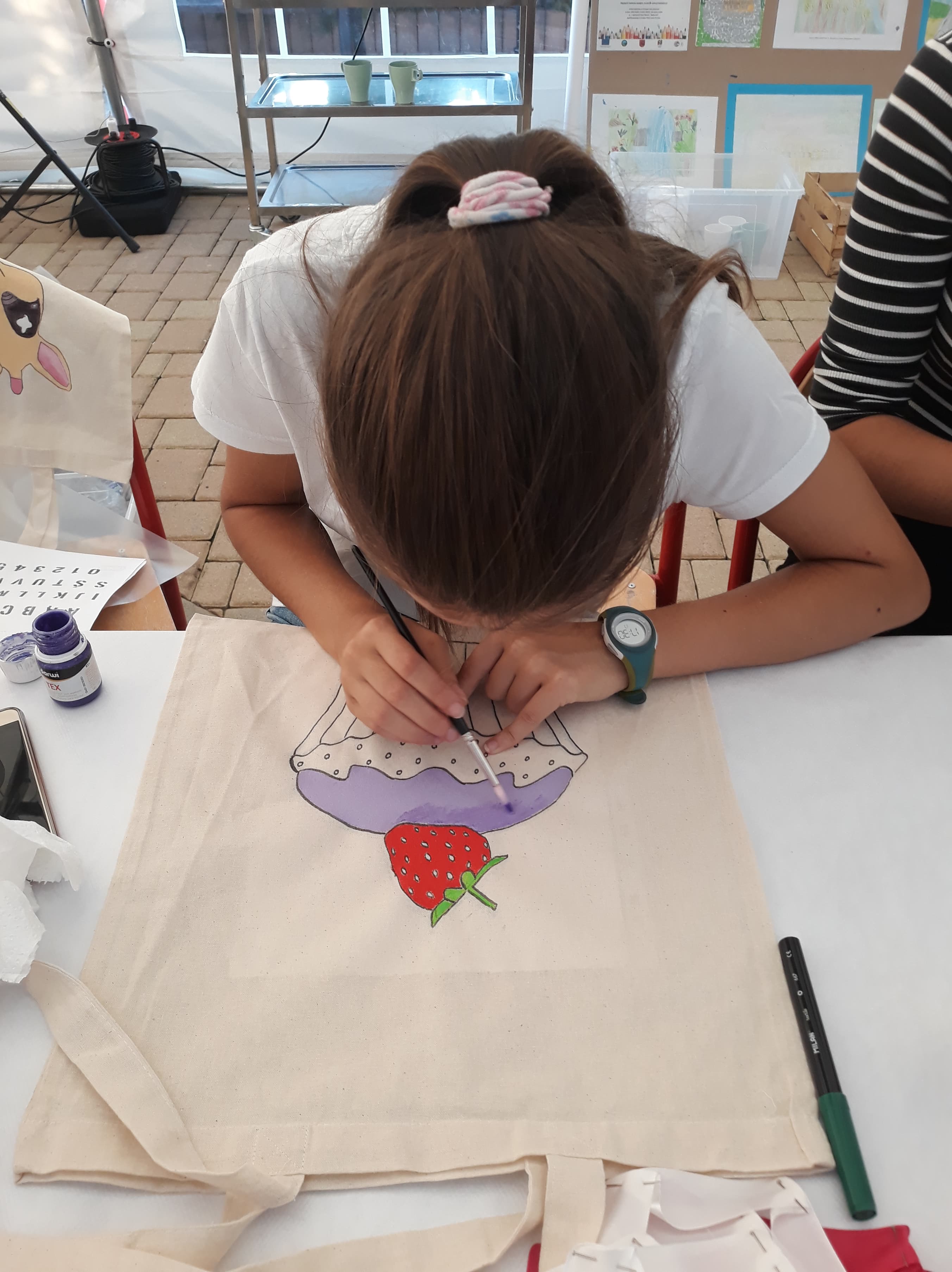 17 września gimnazjalistki Martyna Michniak, Karolina Dębińska, Angelika Podsada pod opieką Moniki Kosman wzięły udział w warsztatach malarskich i rzemiosła artystycznego, imprezie towarzyszącej I Ogólnopolskiemu Plenerowi Malarskiemu w Radłowie. Zajęcia poprowadziła pani mgr Edyta Kożuch – pedagog z Ośrodka Wsparcia Dziennego w Radłowie, a dziewczęta mogły własnoręcznie wykonać i ozdobić torby na zakupy.