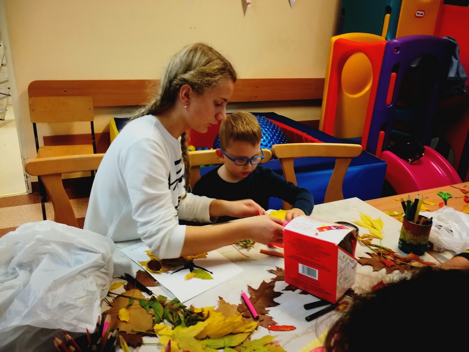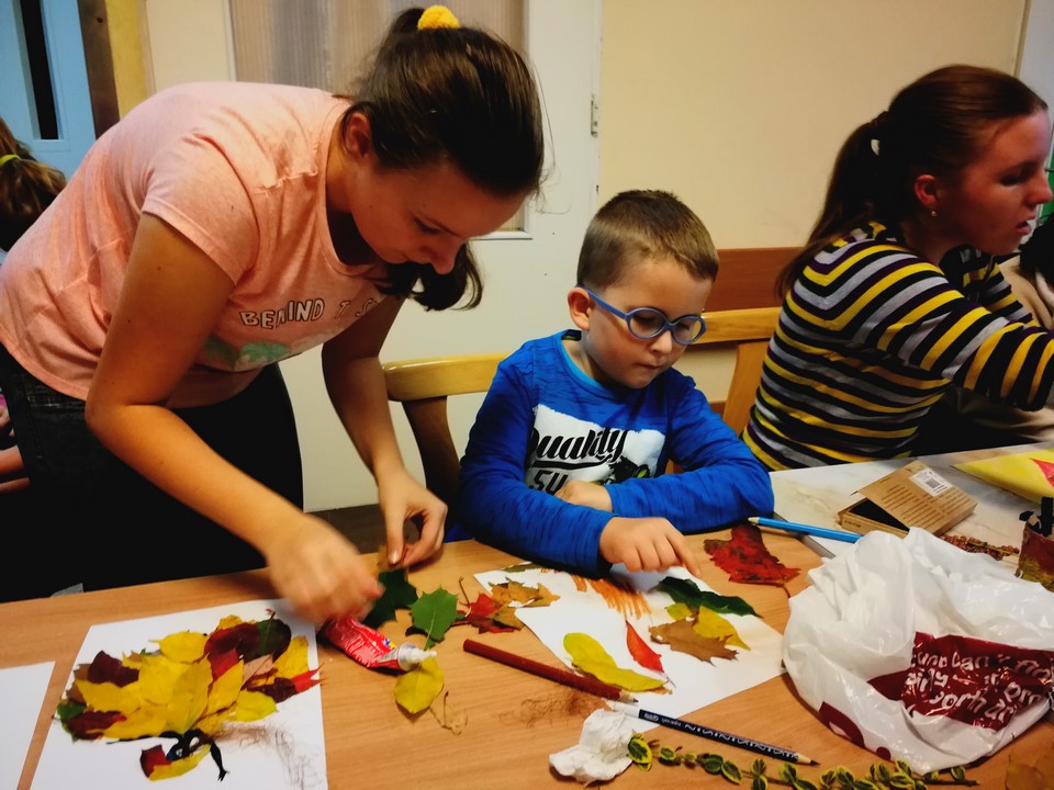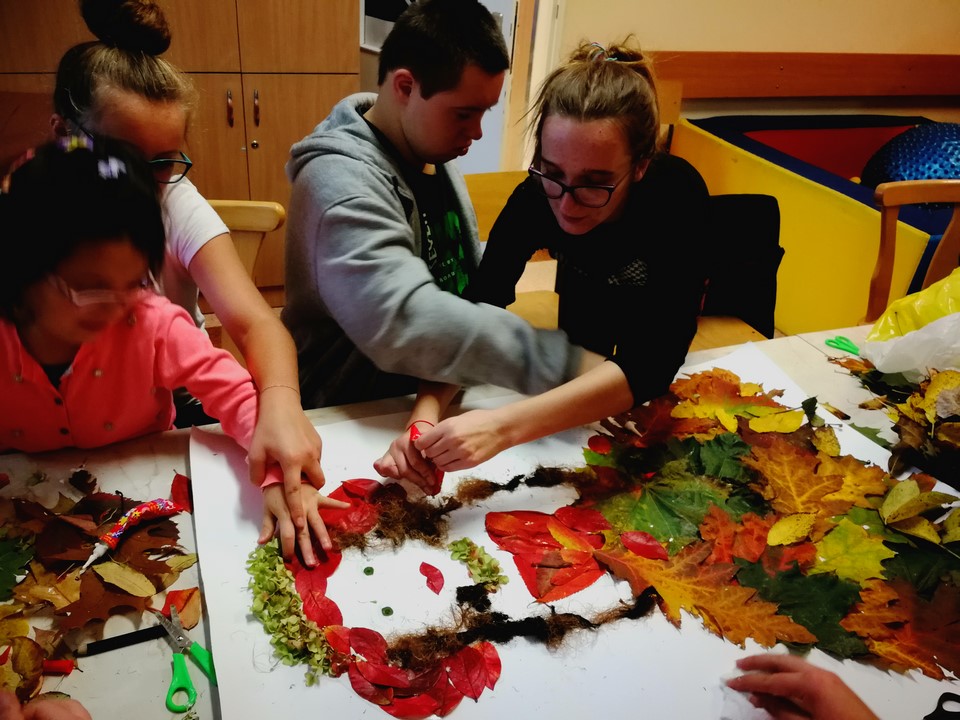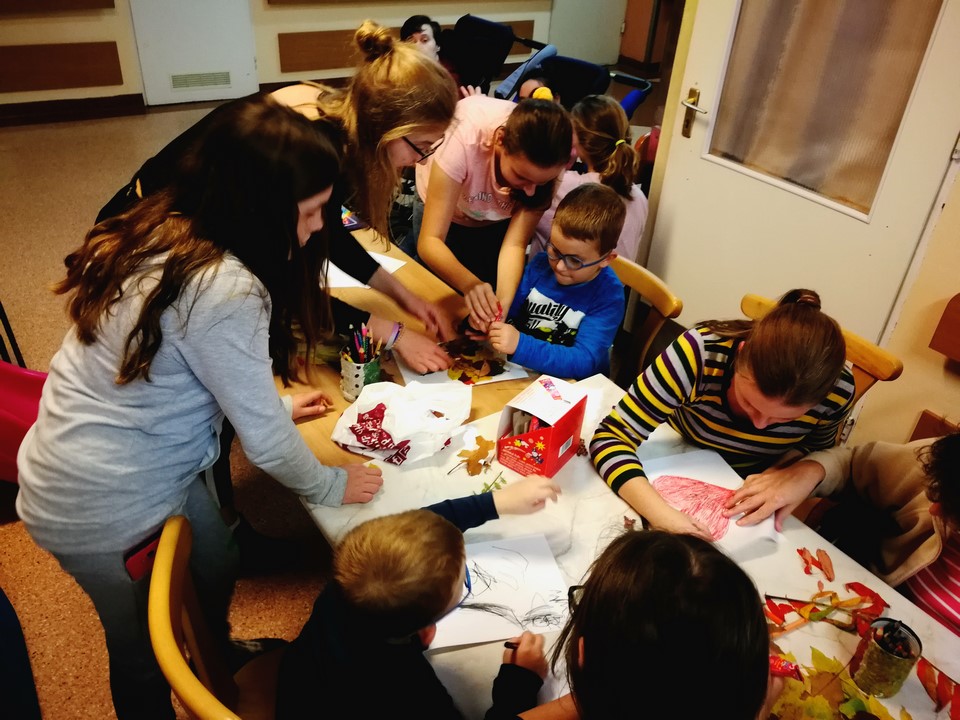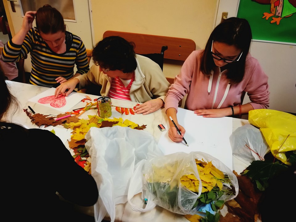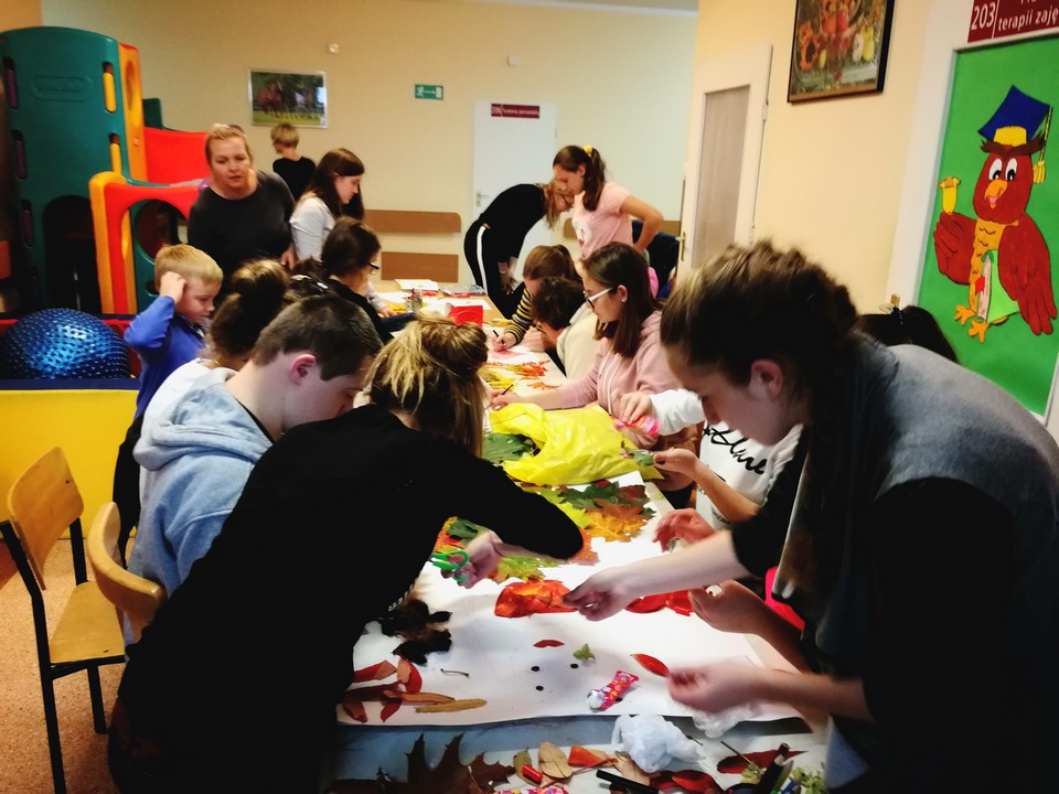 Spotkanie rozpoczęło się od wspólnej modlitwy w Kaplicy Ośrodka, po którym ksiądz Dyrektor przywitał się z Wolontariuszami i wyraził radość z tych spotkań, następnie stali mieszkańcy Ośrodka i inni chętni uczestnicy turnusu rehabilitacyjnego wzięli udział w terapeutycznych zajęciach plastycznych z wykorzystaniem materiałów jakimi obdarowała nas jesień. Pod czujnym okiem naszych Wolontariuszy i przy ich pomocy: panie, dziewczynki i chłopcy wykonali z liści piękne prace plastyczne przedstawiające „Panią Jesień”. Prace mogą teraz cieszyć oczy mieszkańców i odwiedzających Ośrodek. Kilka osób zamiast prac manualnych wybrało gry edukacyjne, które wciągnęły ich bez reszty. Spotkanie było okazją do rozmów i pozwoliło w bardzo miły sposób spędzić czas.