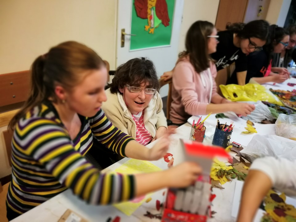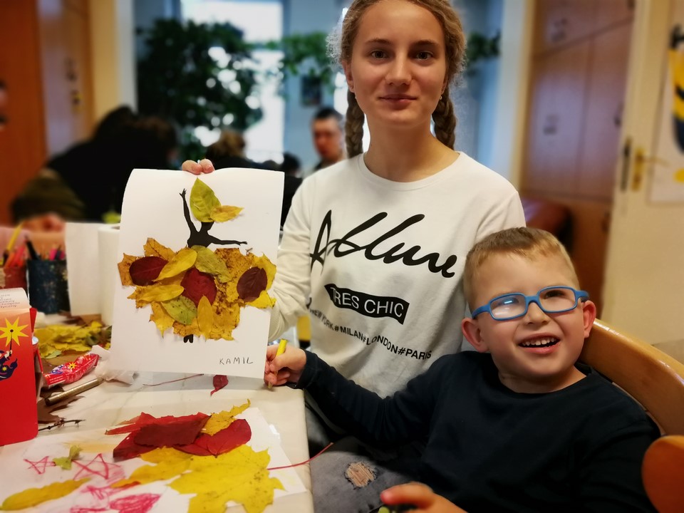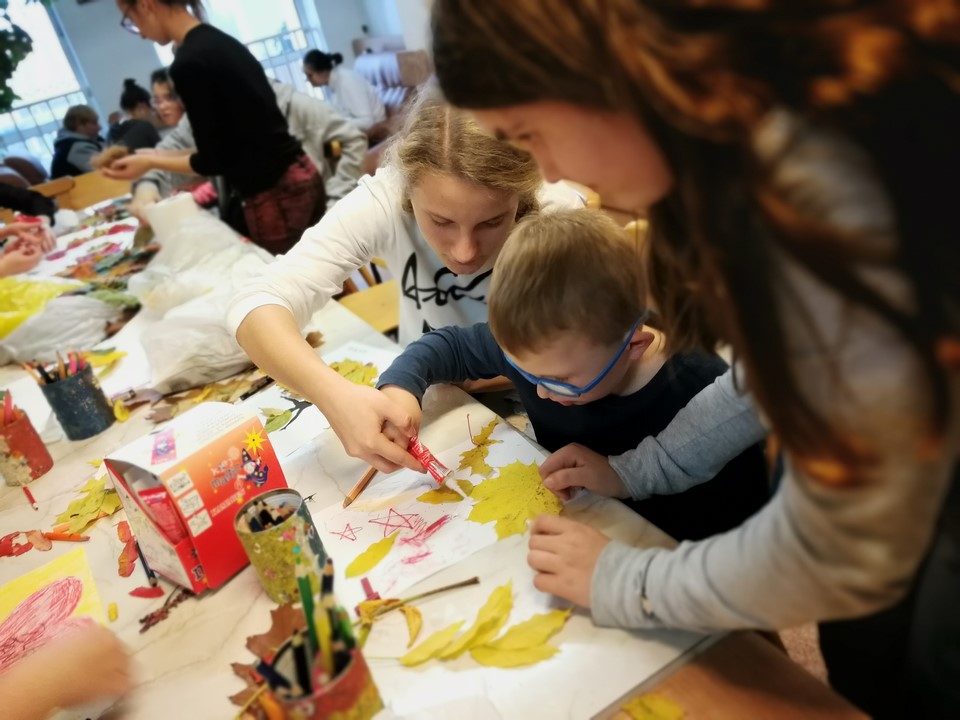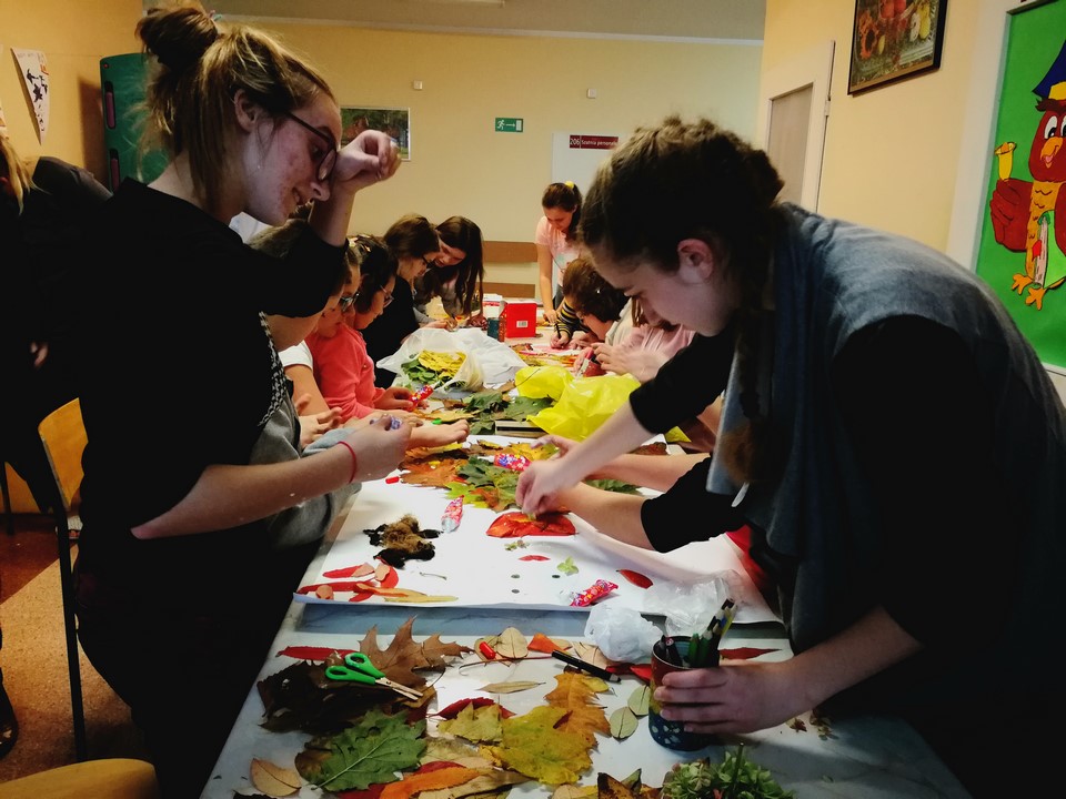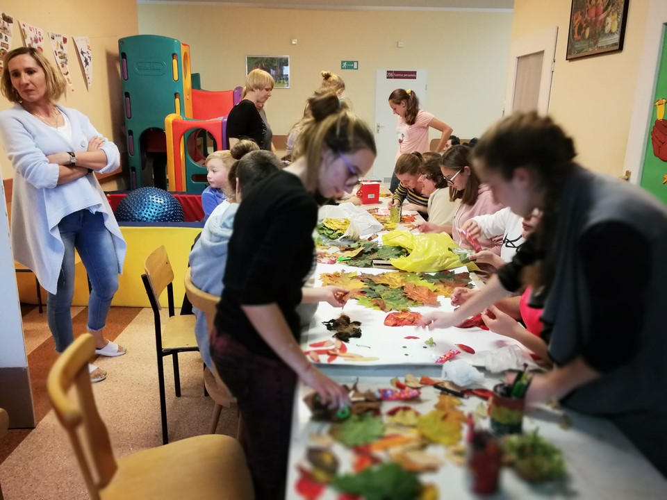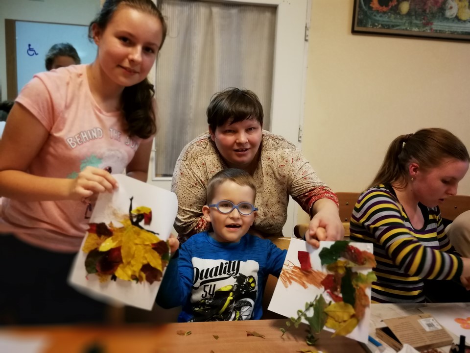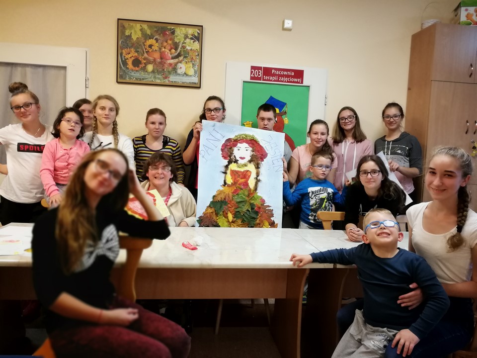 Spotkanie rozpoczęło się od wspólnej modlitwy w Kaplicy Ośrodka, po którym ksiądz Dyrektor przywitał się z Wolontariuszami i wyraził radość z tych spotkań, następnie stali mieszkańcy Ośrodka i inni chętni uczestnicy turnusu rehabilitacyjnego wzięli udział w terapeutycznych zajęciach plastycznych z wykorzystaniem materiałów jakimi obdarowała nas jesień. Pod czujnym okiem naszych Wolontariuszy i przy ich pomocy: panie, dziewczynki i chłopcy wykonali z liści piękne prace plastyczne przedstawiające „Panią Jesień”. Prace mogą teraz cieszyć oczy mieszkańców i odwiedzających Ośrodek. Kilka osób zamiast prac manualnych wybrało gry edukacyjne, które wciągnęły ich bez reszty. Spotkanie było okazją do rozmów i pozwoliło w bardzo miły sposób spędzić czas.