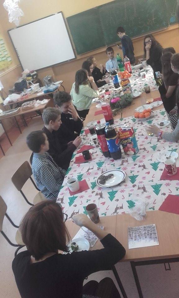 Wraz z wychowawczynią Moniką Bochenek – Król uczniowie wspólnie dzielili się opłatkiem, śpiewali kolędy.