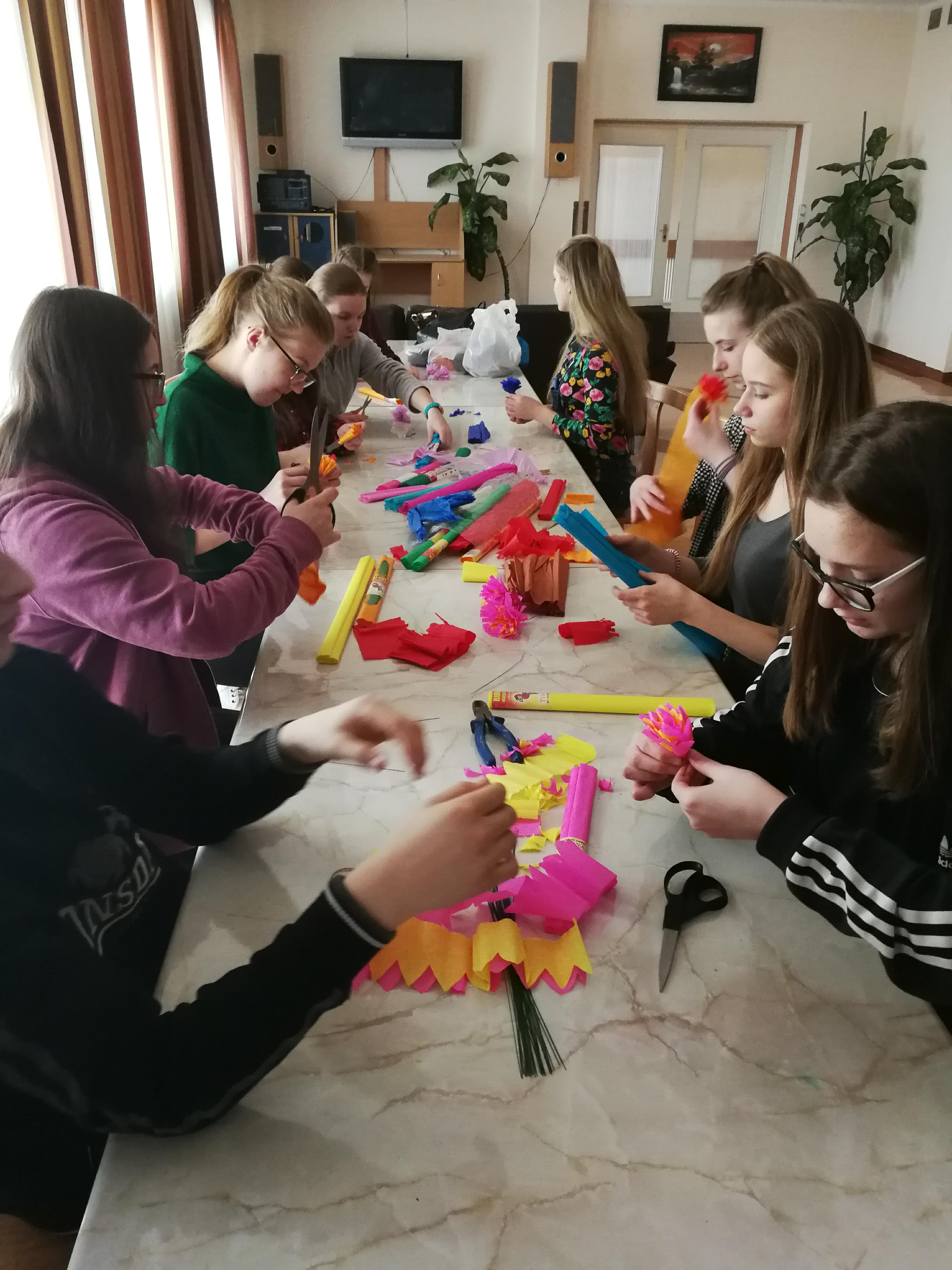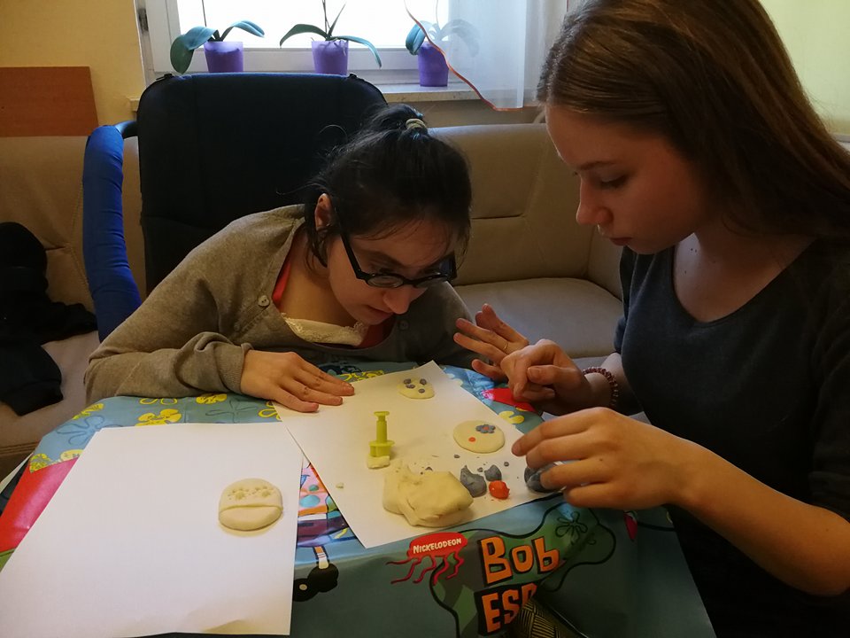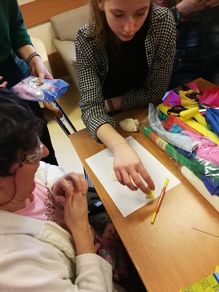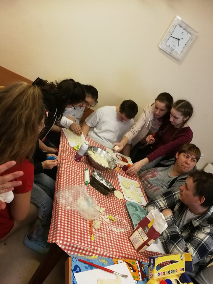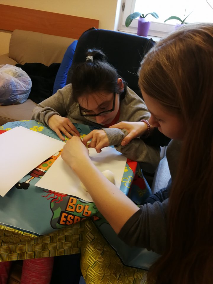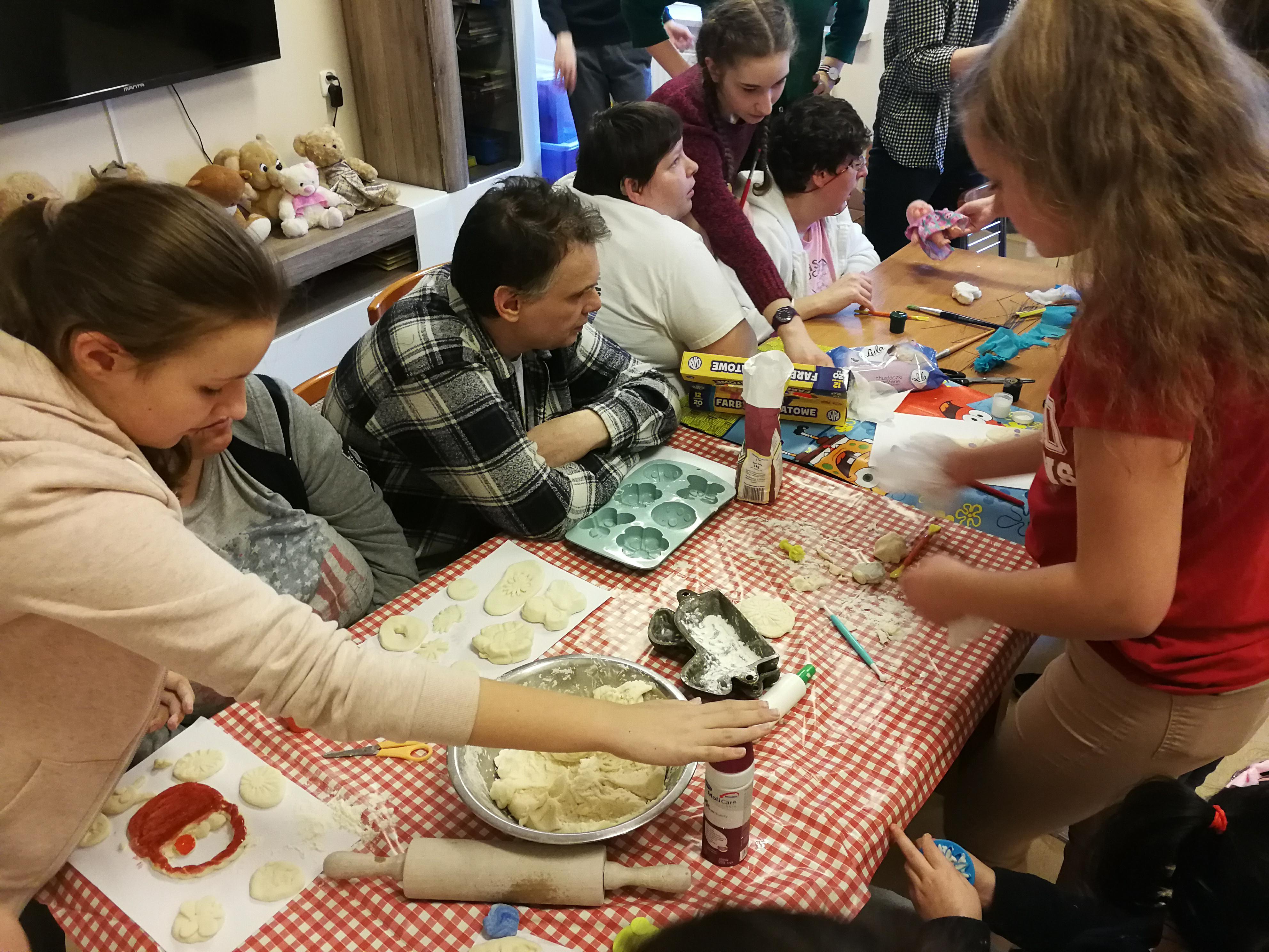 W piątkowe popołudnie 9 marca, spotkaliśmy się z naszymi Przyjaciółmi z Ośrodka w Jadownikach Mokrych aby wykonywać ozdoby wielkanocne. Z masy solnej, przygotowanej przez Patrycję i Julitę, wykonywaliśmy zajączki, kurczaczki, pisanki i koszyczki. Z bibuły i krepiny różnokolorowe, wiosenne kwiaty. Wspólna spędzony czas sprawił wszystkim radość i zadowolenie oraz był przyjemną odmianą zwykłej codzienności dla obydwu stron.