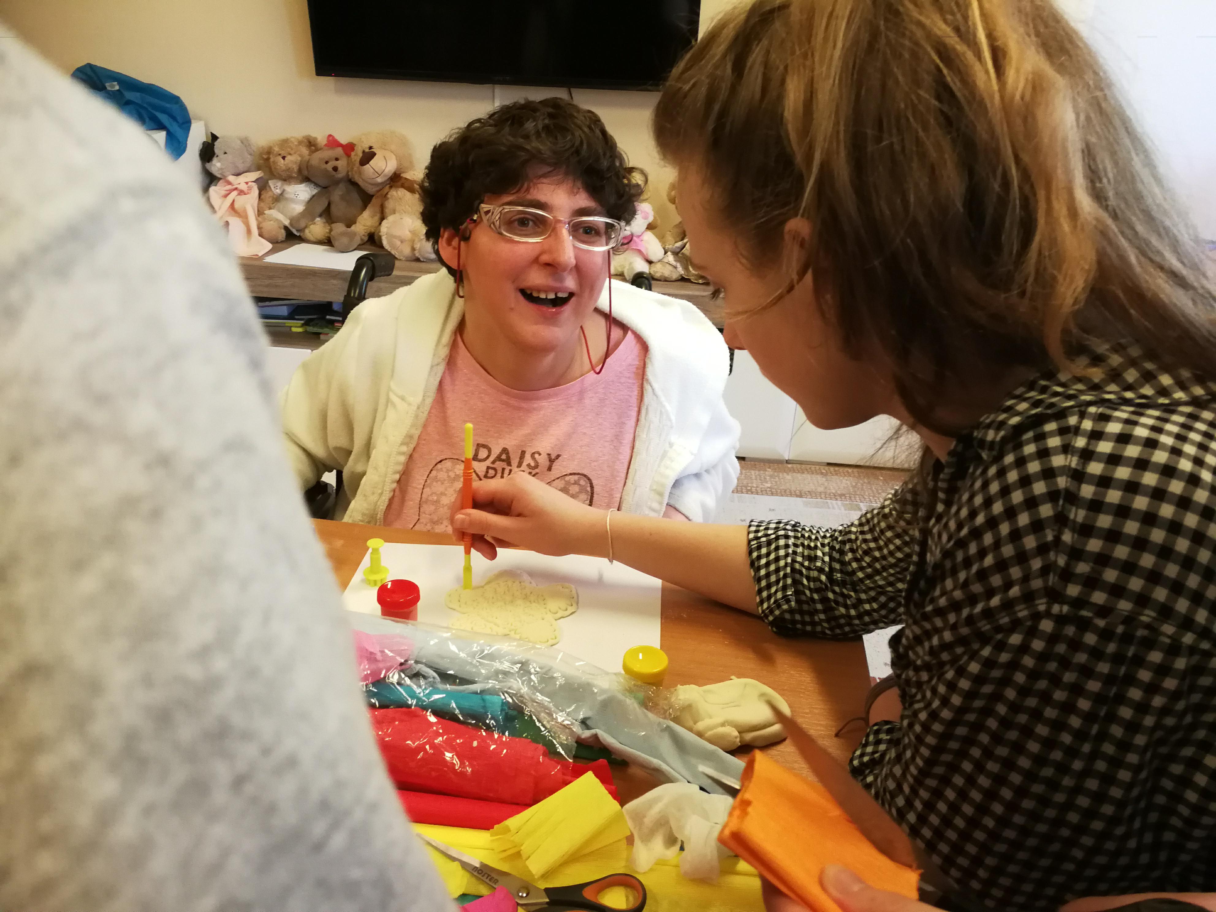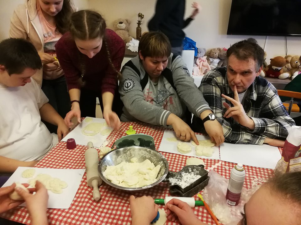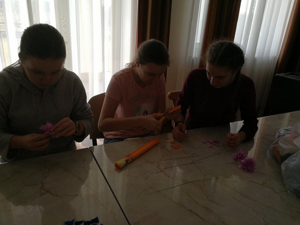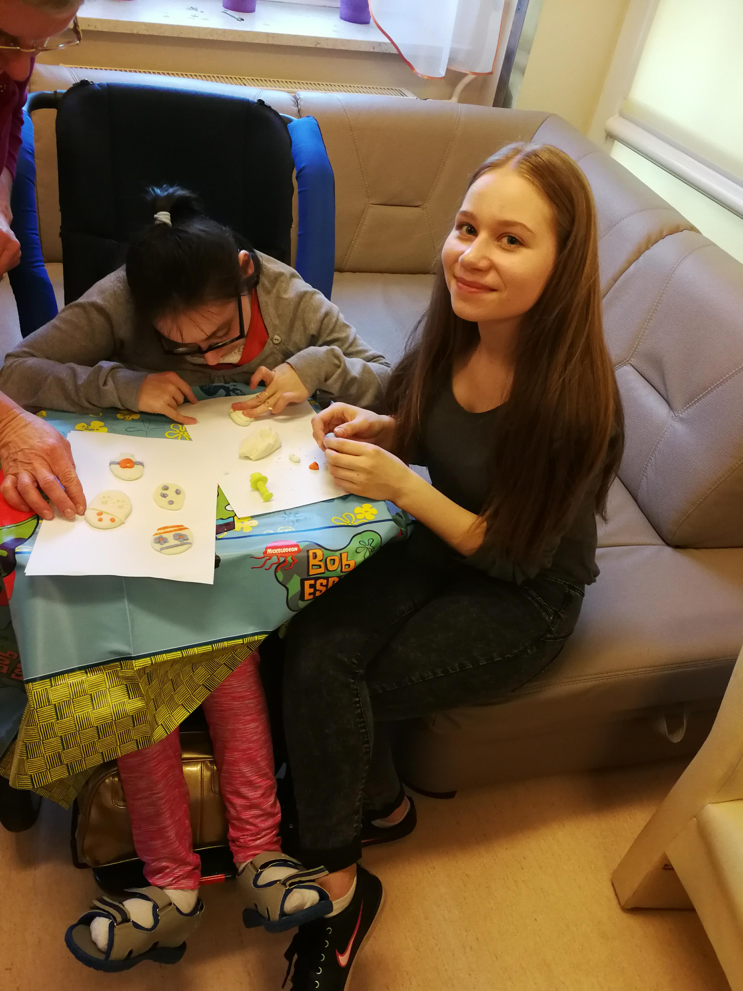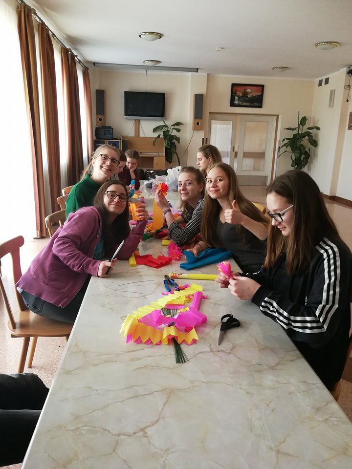 W piątkowe popołudnie 9 marca, spotkaliśmy się z naszymi Przyjaciółmi z Ośrodka w Jadownikach Mokrych aby wykonywać ozdoby wielkanocne. Z masy solnej, przygotowanej przez Patrycję i Julitę, wykonywaliśmy zajączki, kurczaczki, pisanki i koszyczki. Z bibuły i krepiny różnokolorowe, wiosenne kwiaty. Wspólna spędzony czas sprawił wszystkim radość i zadowolenie oraz był przyjemną odmianą zwykłej codzienności dla obydwu stron.