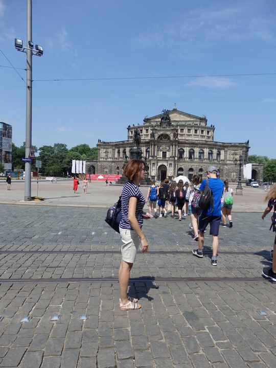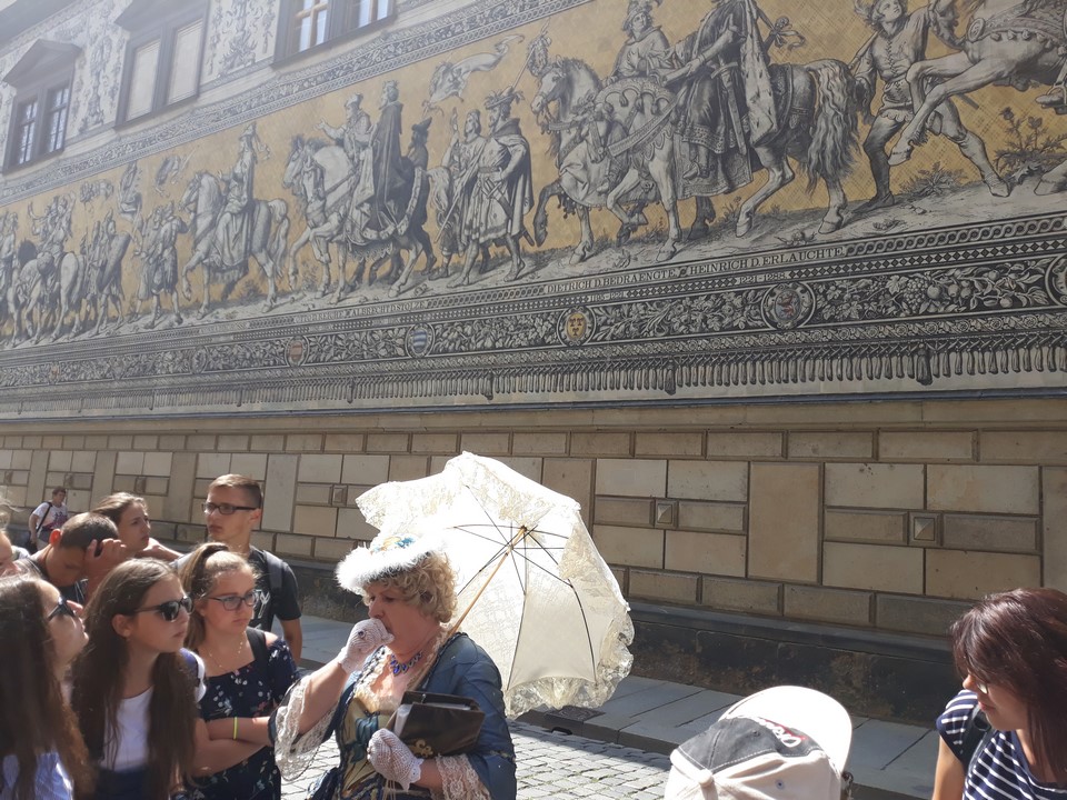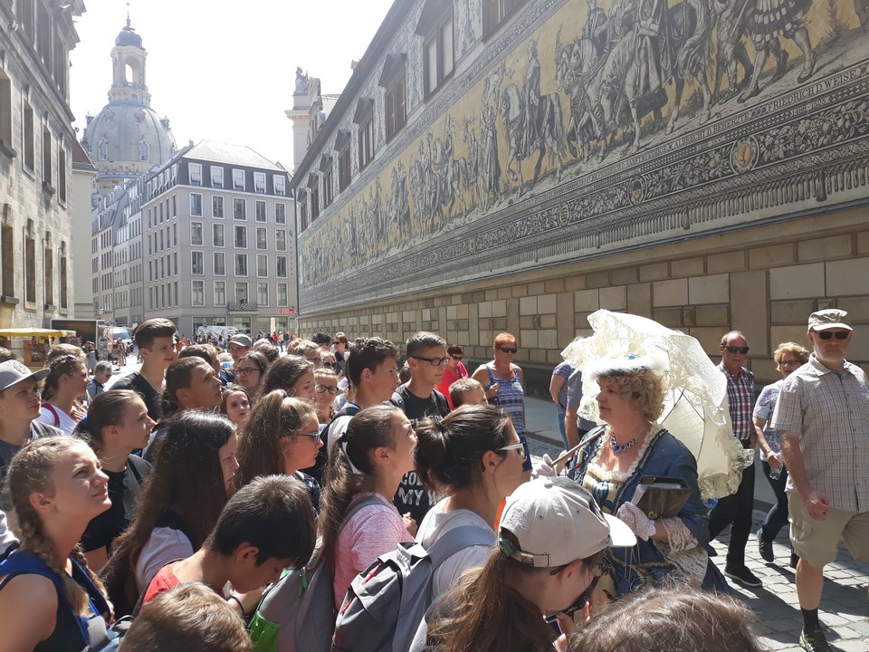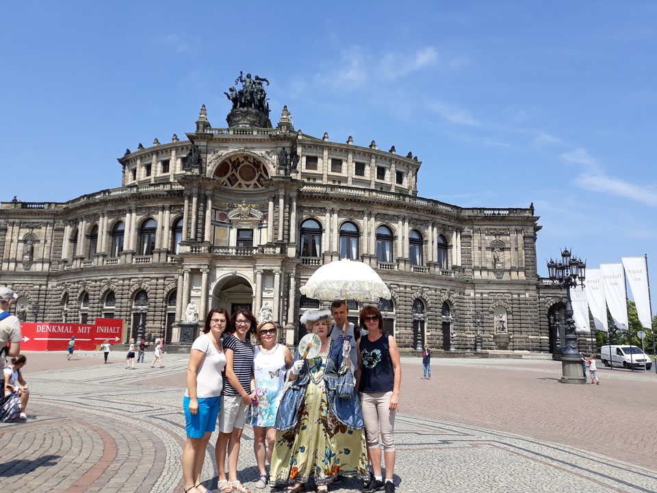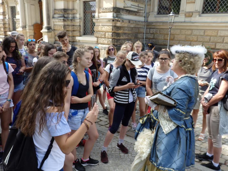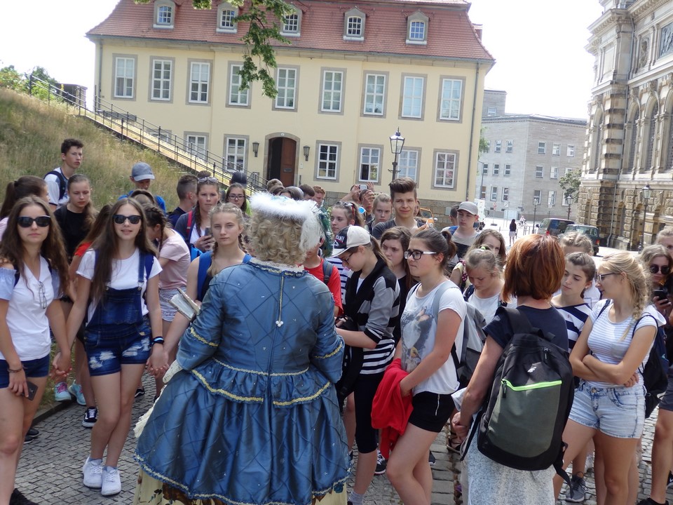 W trzecim dniu wycieczki, po krótkiej nocy w polskim Karpaczu pojechaliśmy do Drezna. Tam, w towarzystwie uroczej hrabiny Lubomirskiej zobaczyliśmy: Pałac Zwinger, Semperoper, Staatliche Kunstsammlungen Dresden, pomnik Augusta II, plac pałacowy, Kościół Najświętszej Marii Panny, Skwer Starych Marketów. Otrzymaliśmy lekcje tradycyjnych ukłonów barokowych; zakupiliśmy pamiątki w pięknej galerii drezneńskiej, po czym wróciliśmy na nocleg do Karpacza.